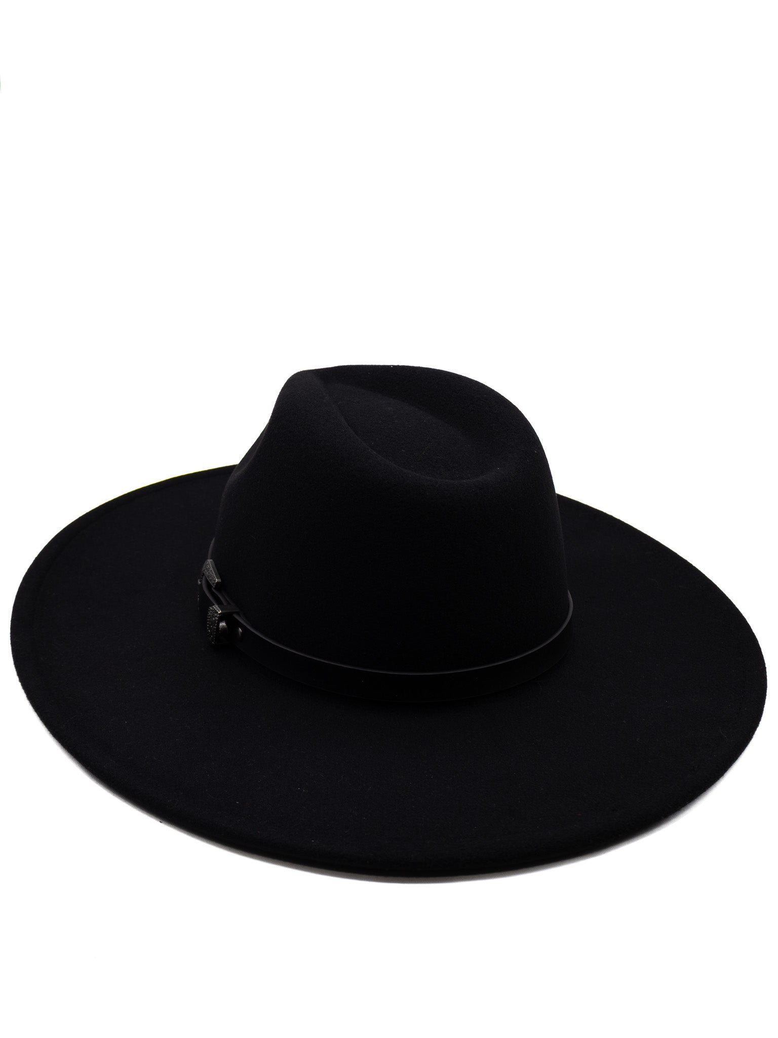 The pinched top is reminiscent of a cowboy hat and the embellished strap is complete with a western style gunmetal buckle