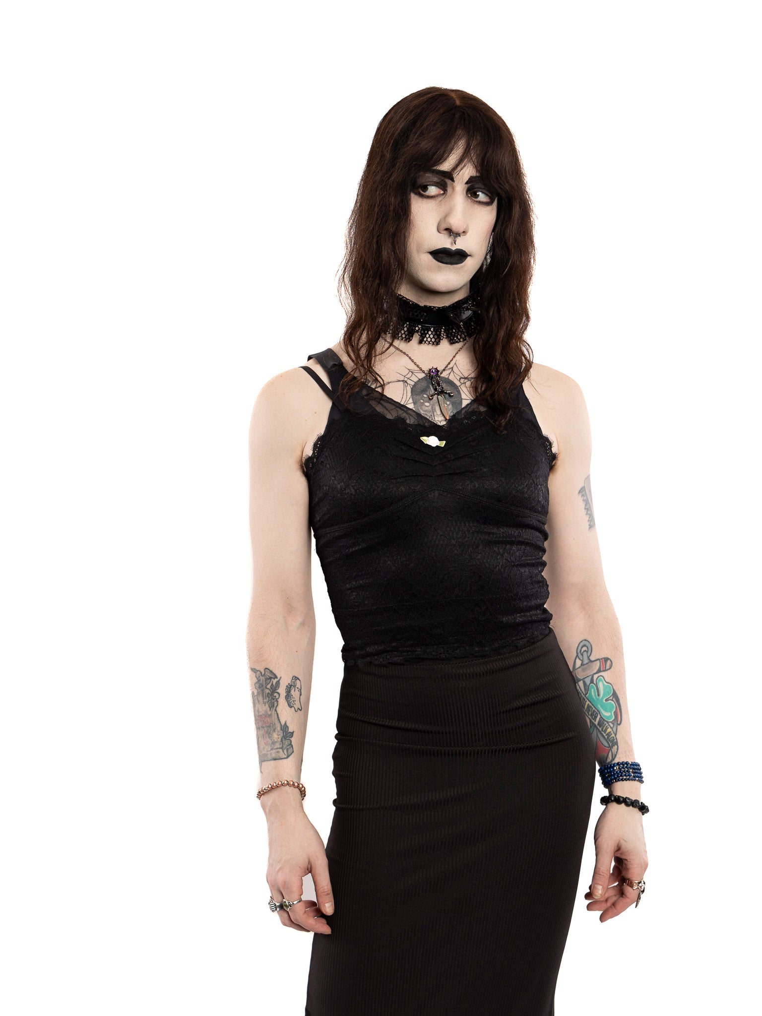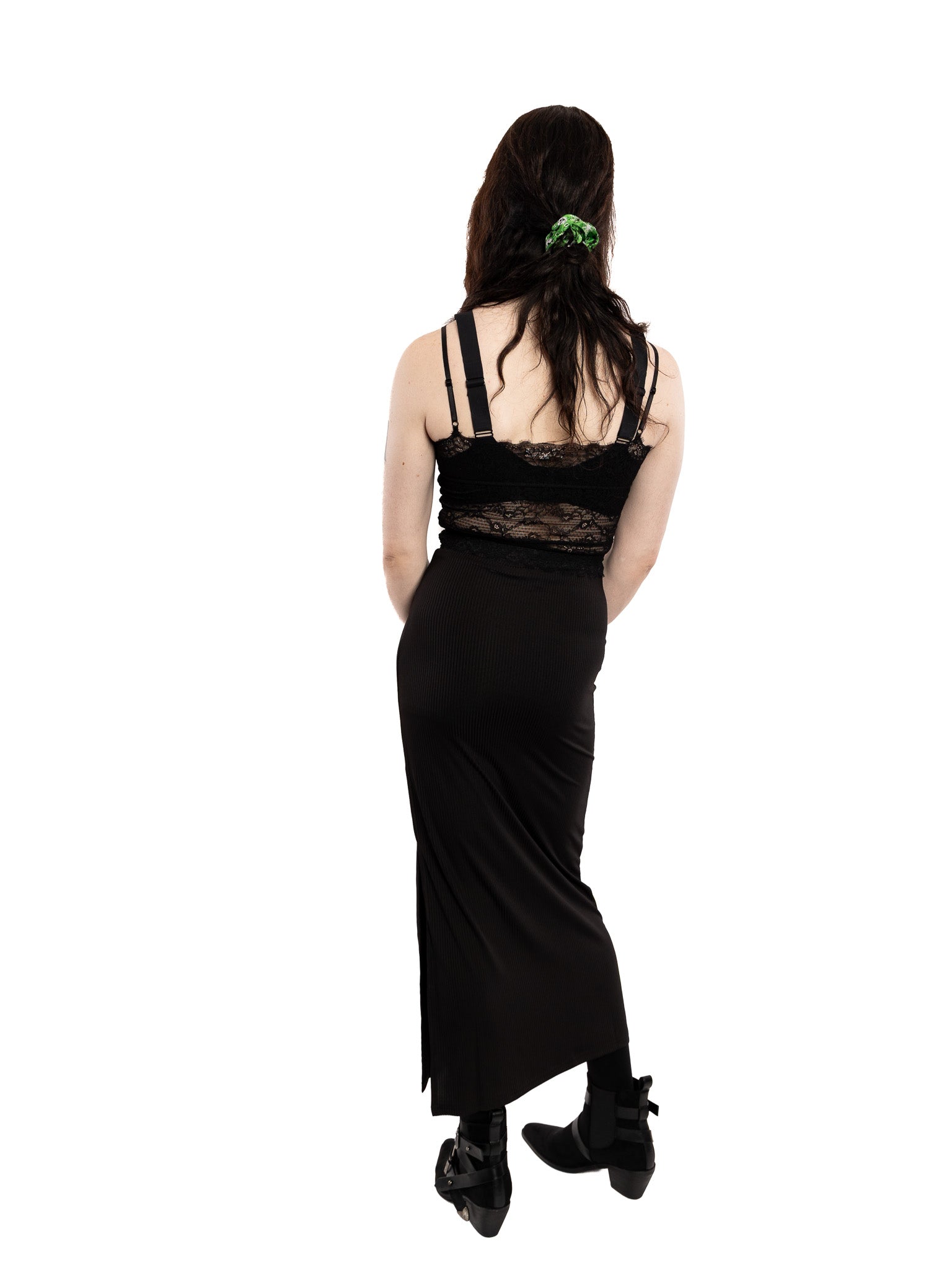 Gunmetal hardware.