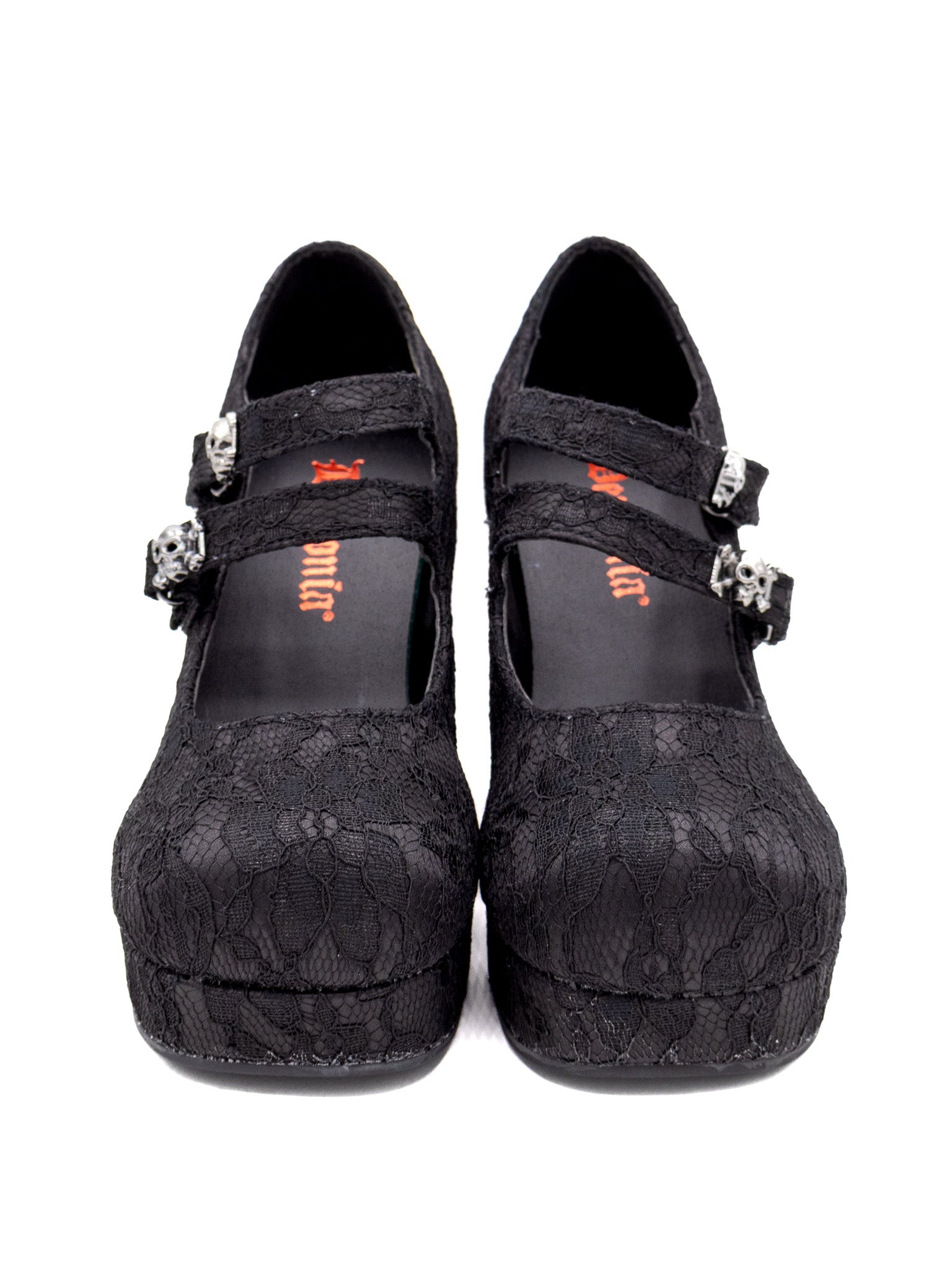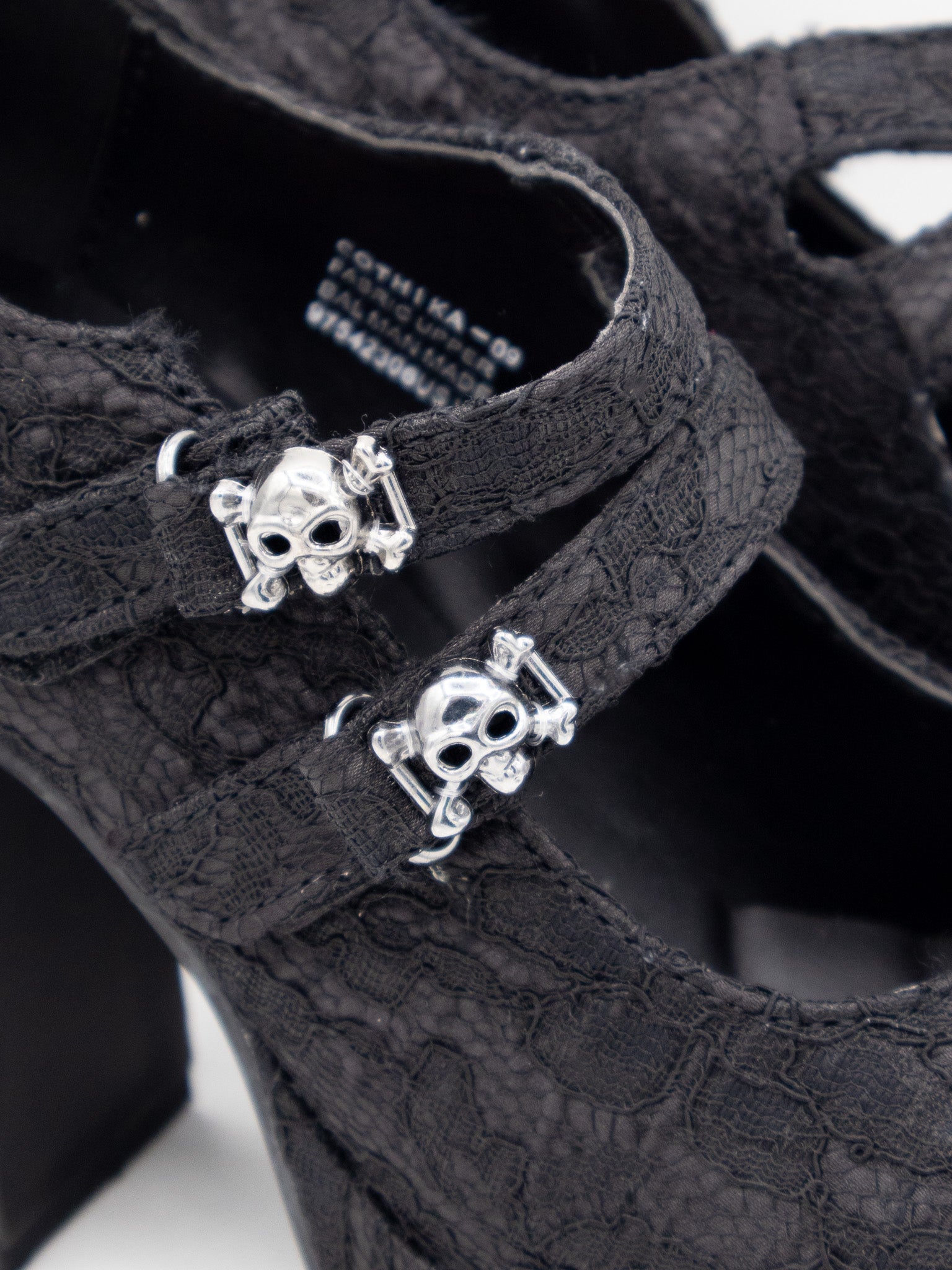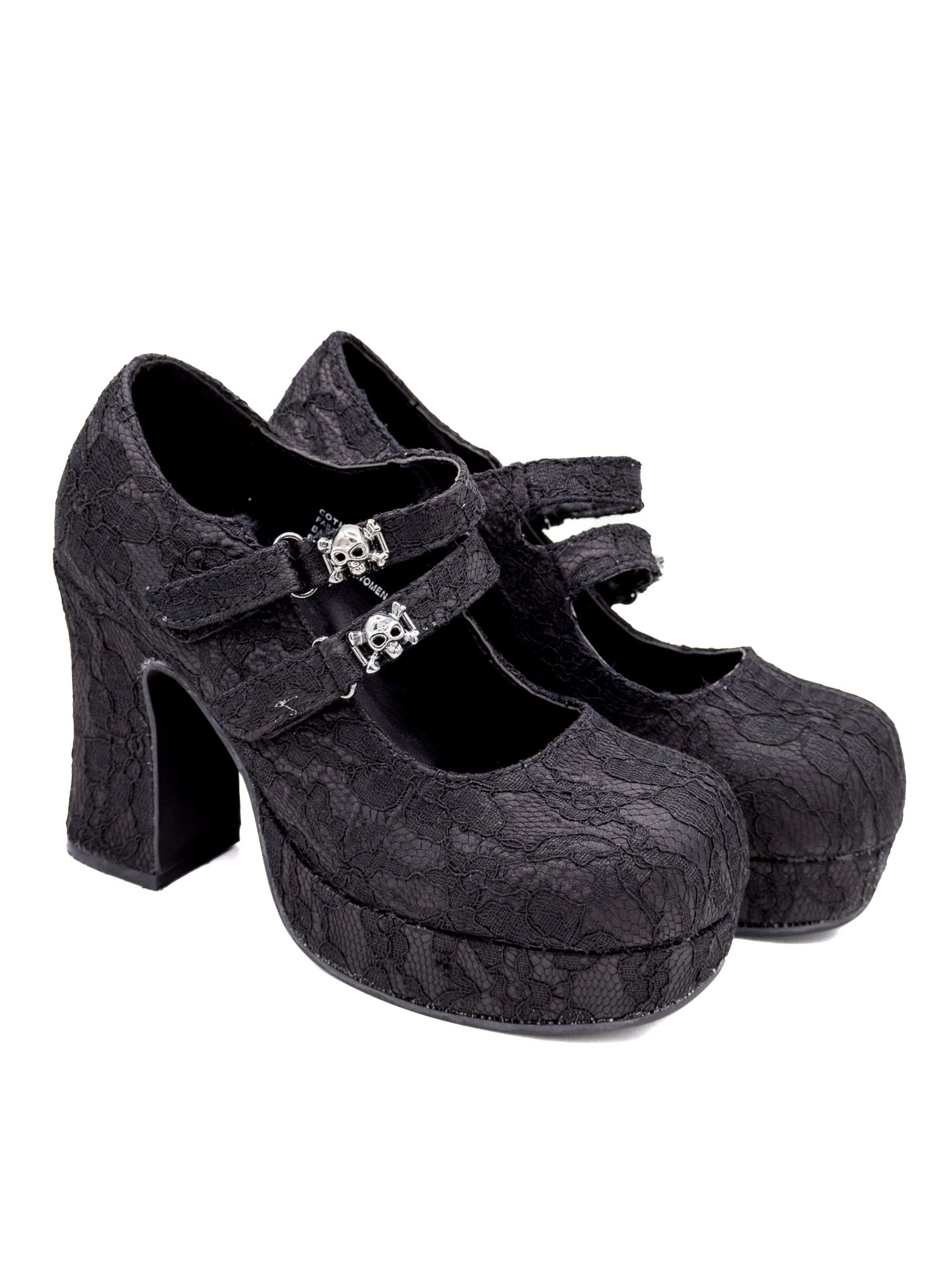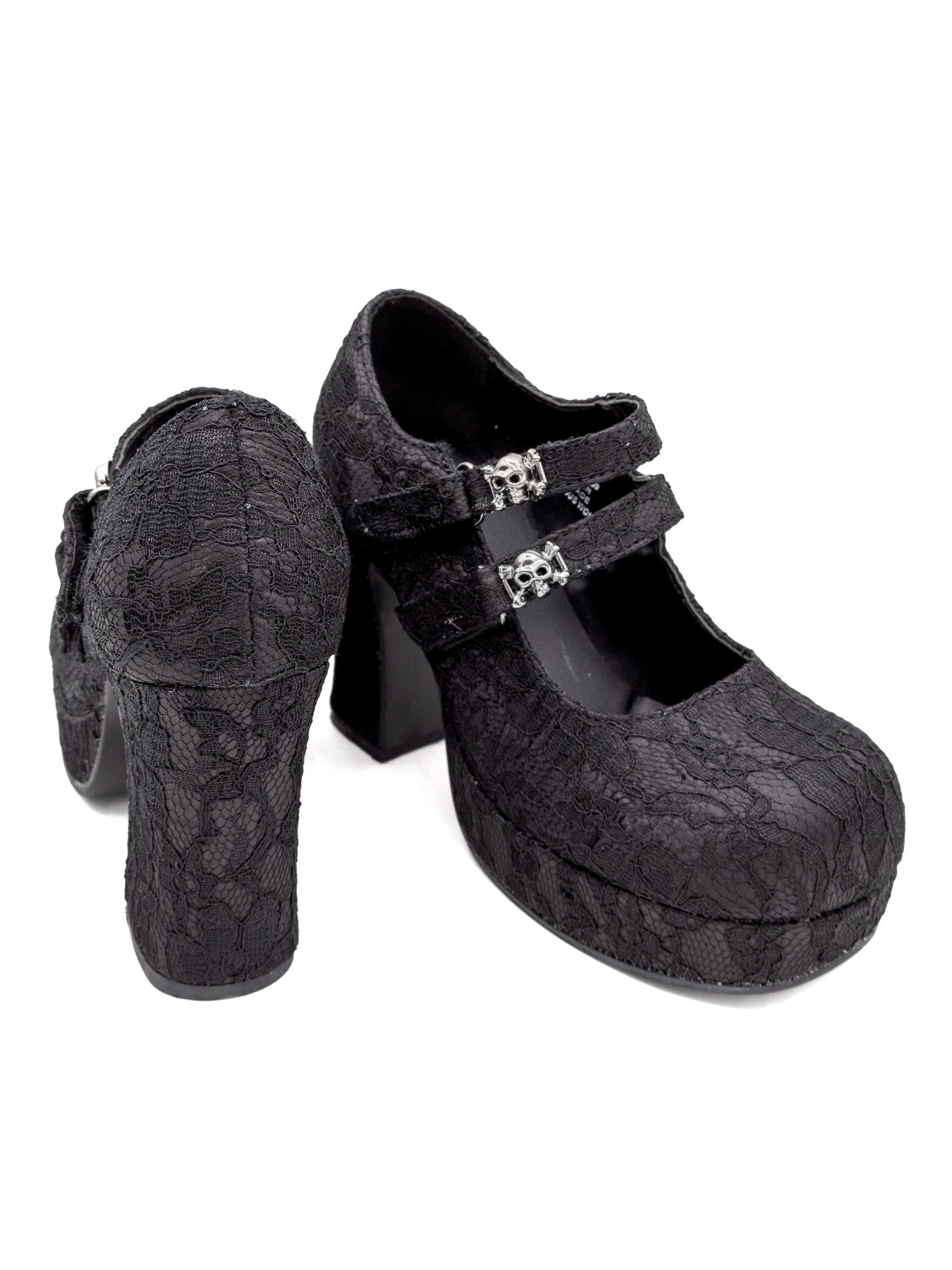 We just adore these double-strap black lace platform mary janes, which feature cute little skulls on the buckles! We dig them for the classy 90's feels and that super chunky heel!