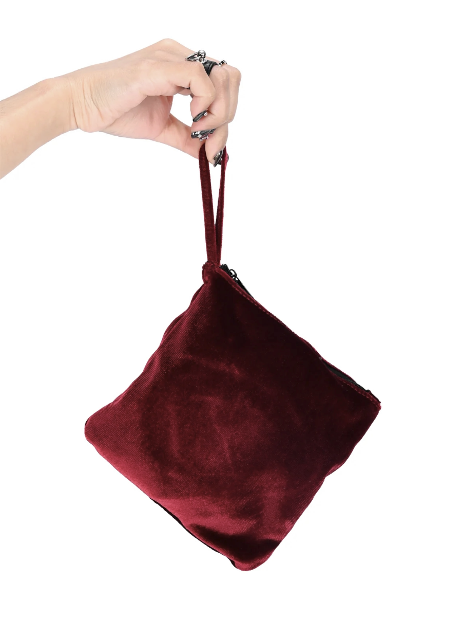 Burgundy velvet folding flats made to switch out of platforms after a long day at a convention or even a night out.
