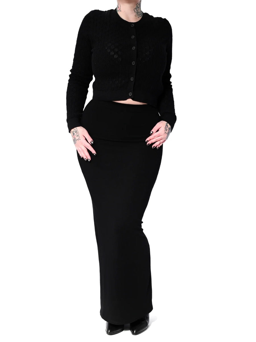 This maxi skirt is so versatile, you can really wear her anywhere. Dress her down with a band tee and boots, or dress her up with a blouse and some platforms.