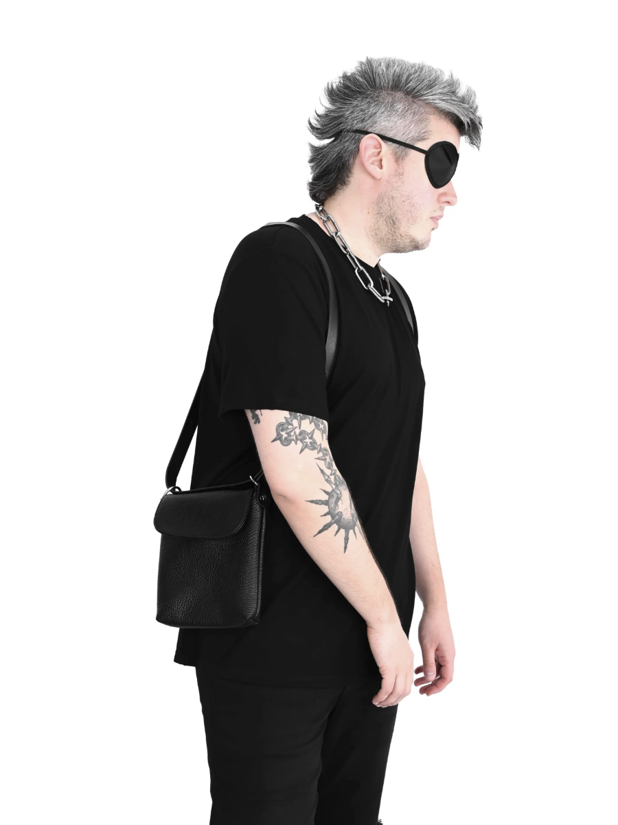 Straps made out of a soft but sturdy vegan leather, and bags are made out of a pebbled vegan leather.