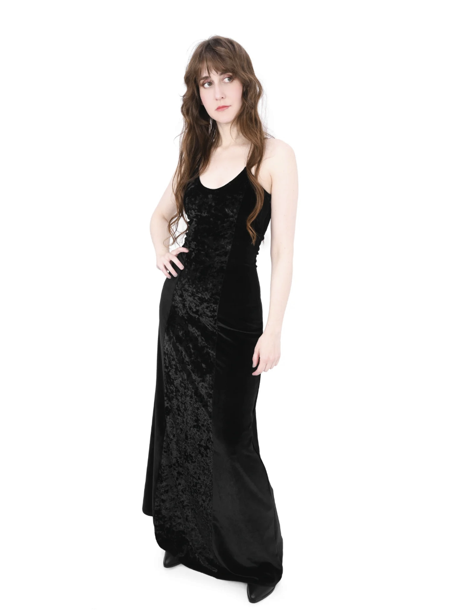 This dress is inspired by coolest goth babes of the 90s. A perfect piece for any Spring formal events, and can be easily styled with a bolero or layered for Fall.