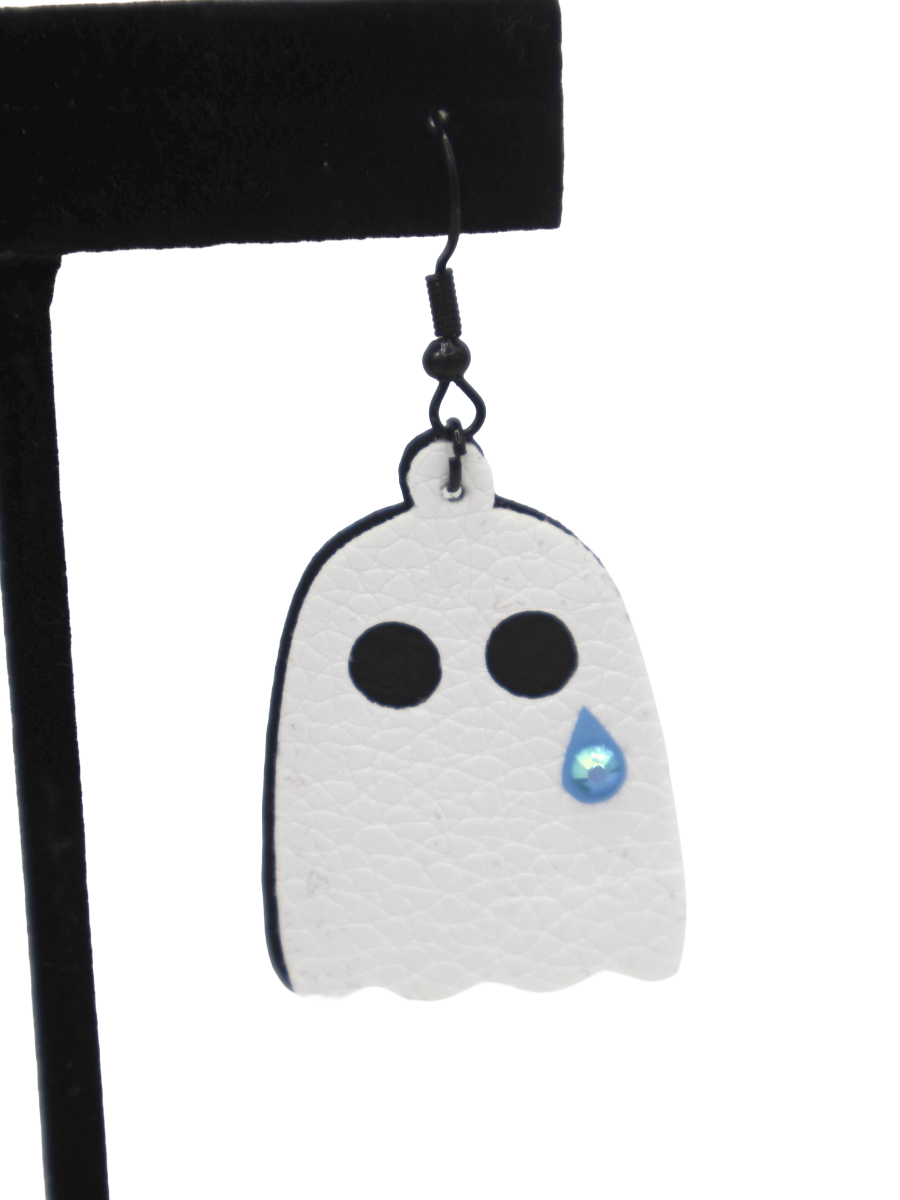 Handmade by our very own Tiffany of Bats in the Belfry Crafts, these lightweight earrings are made of layered faux leather with applied vinyl and rhinestones for extra spooky detail!