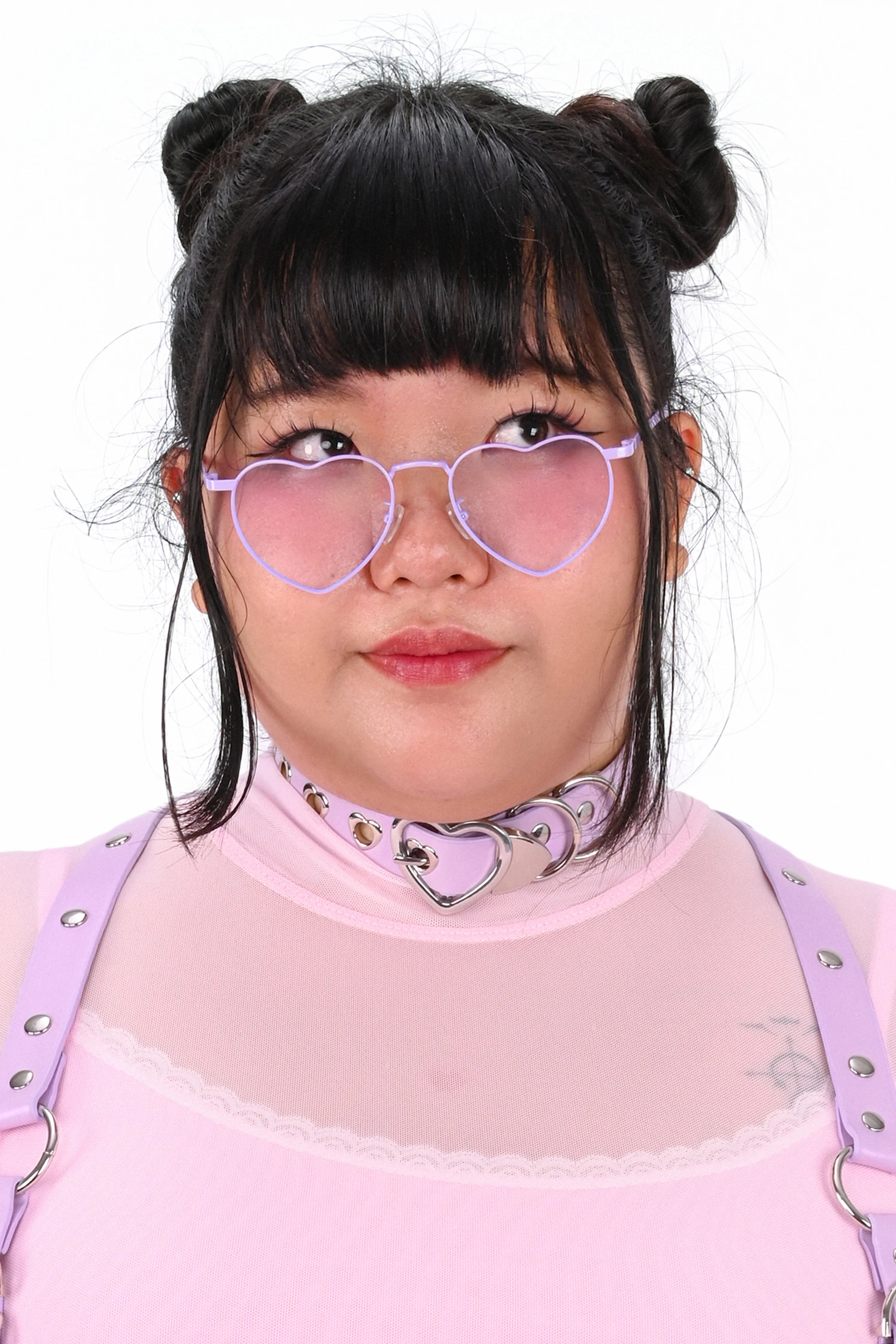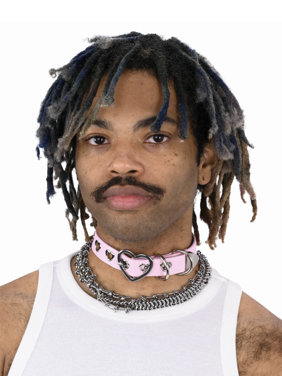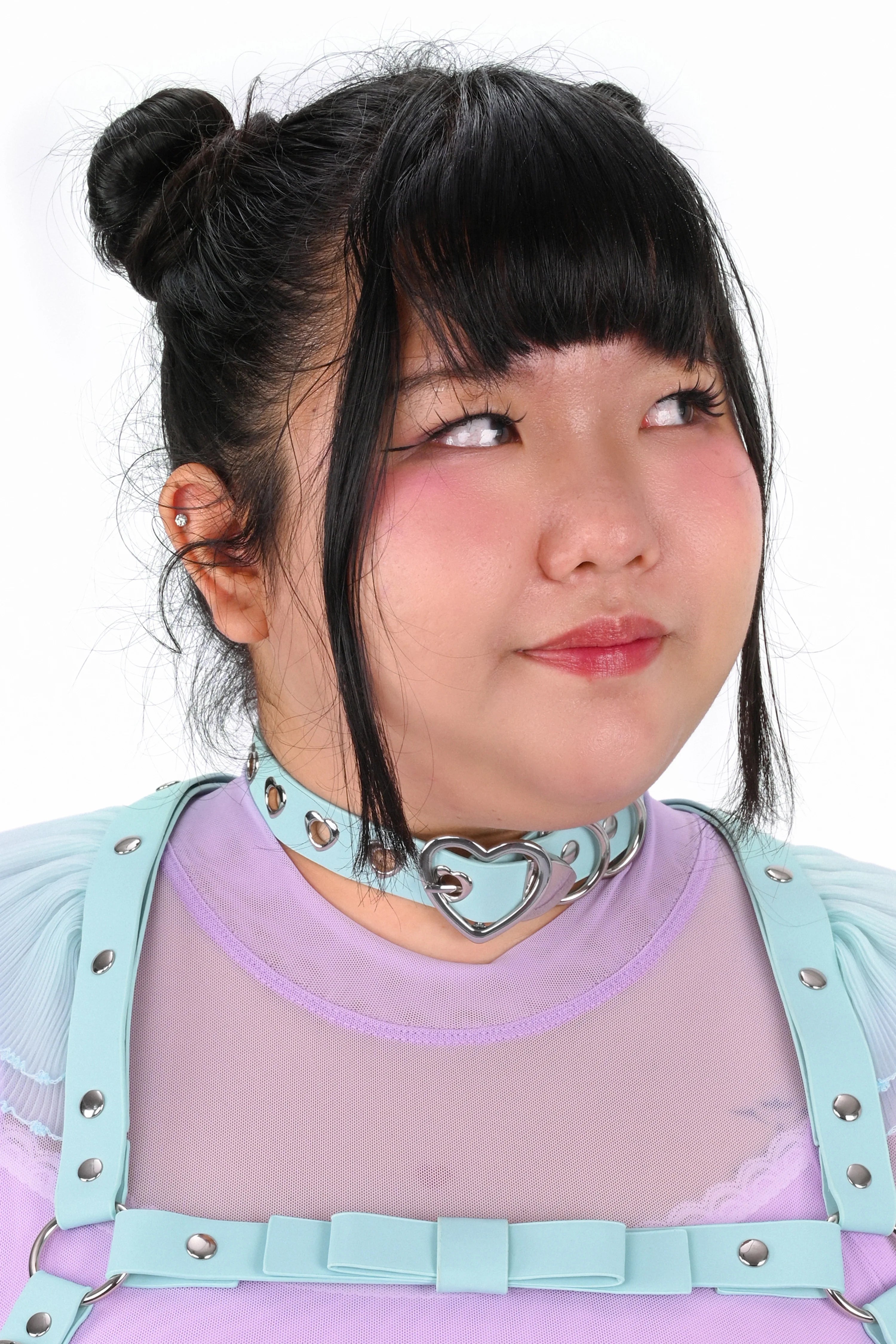A choker necklace in the perfect shade of lavender, complete with a cute heart buckle. The heart rivets are not only cute, but go all around the length of the choker, offering an extremely adjustable fit. Made to match perfectly with the lavender Cherub Harness.