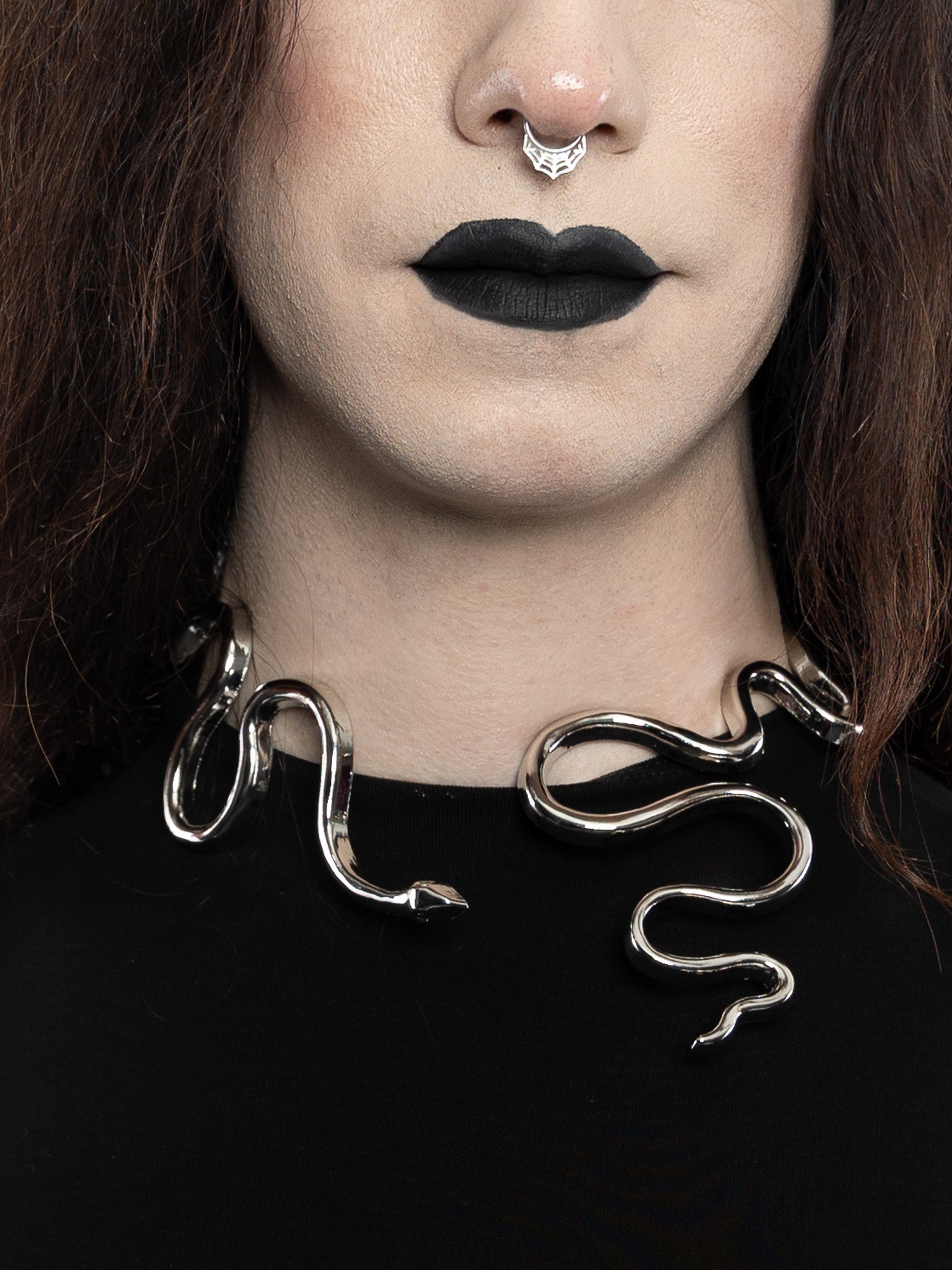 This bold serpent shaped necklace is made from a lightweight metal and comes in either silver or gold alloy to help you shine your best! perfect for elevating a simple outfit or making a fancier outfit stand out even more!