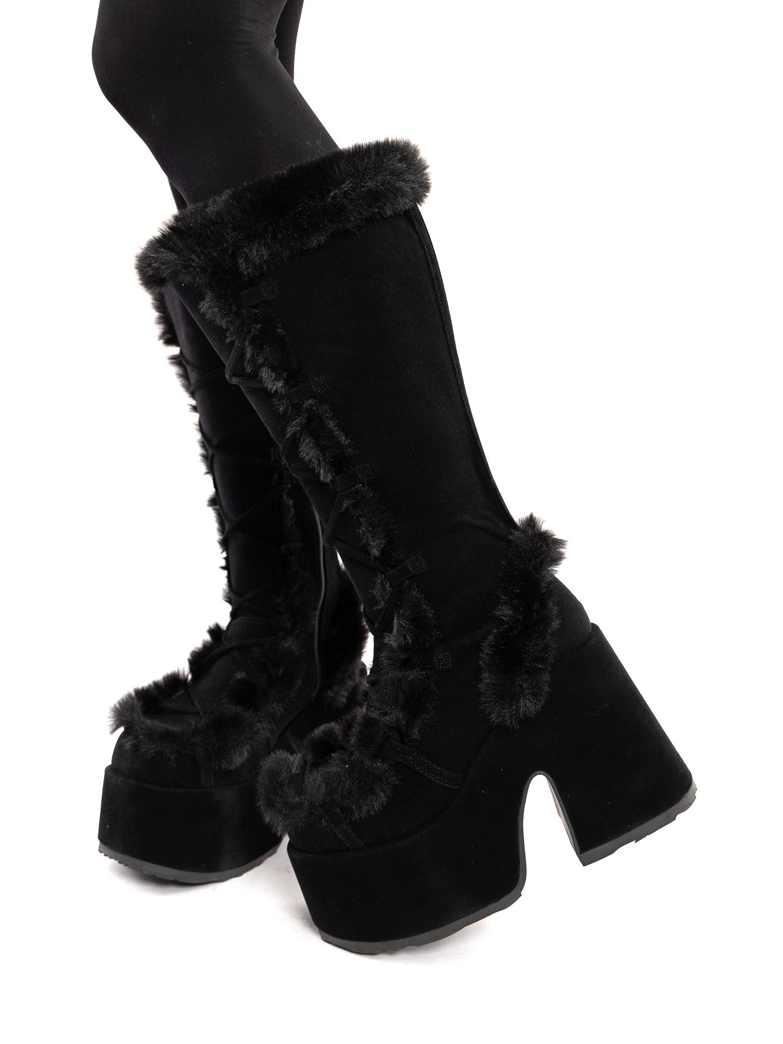 Winter Goth Fur Platform Boots DEMONIA