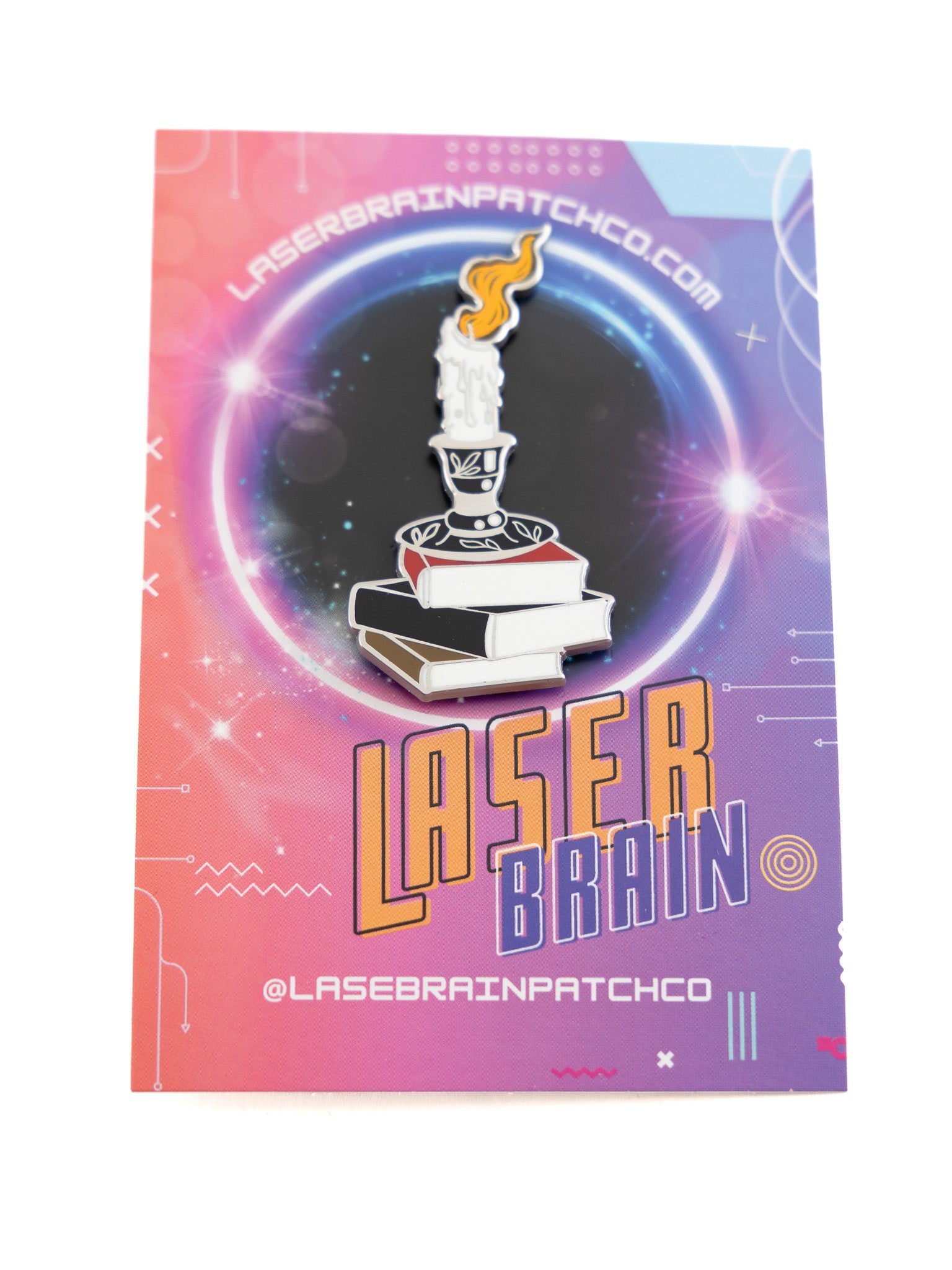 Candle & Book Stack Pin LASERBRAIN