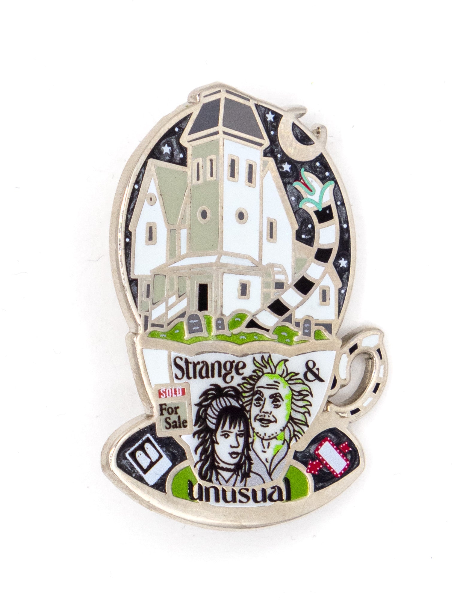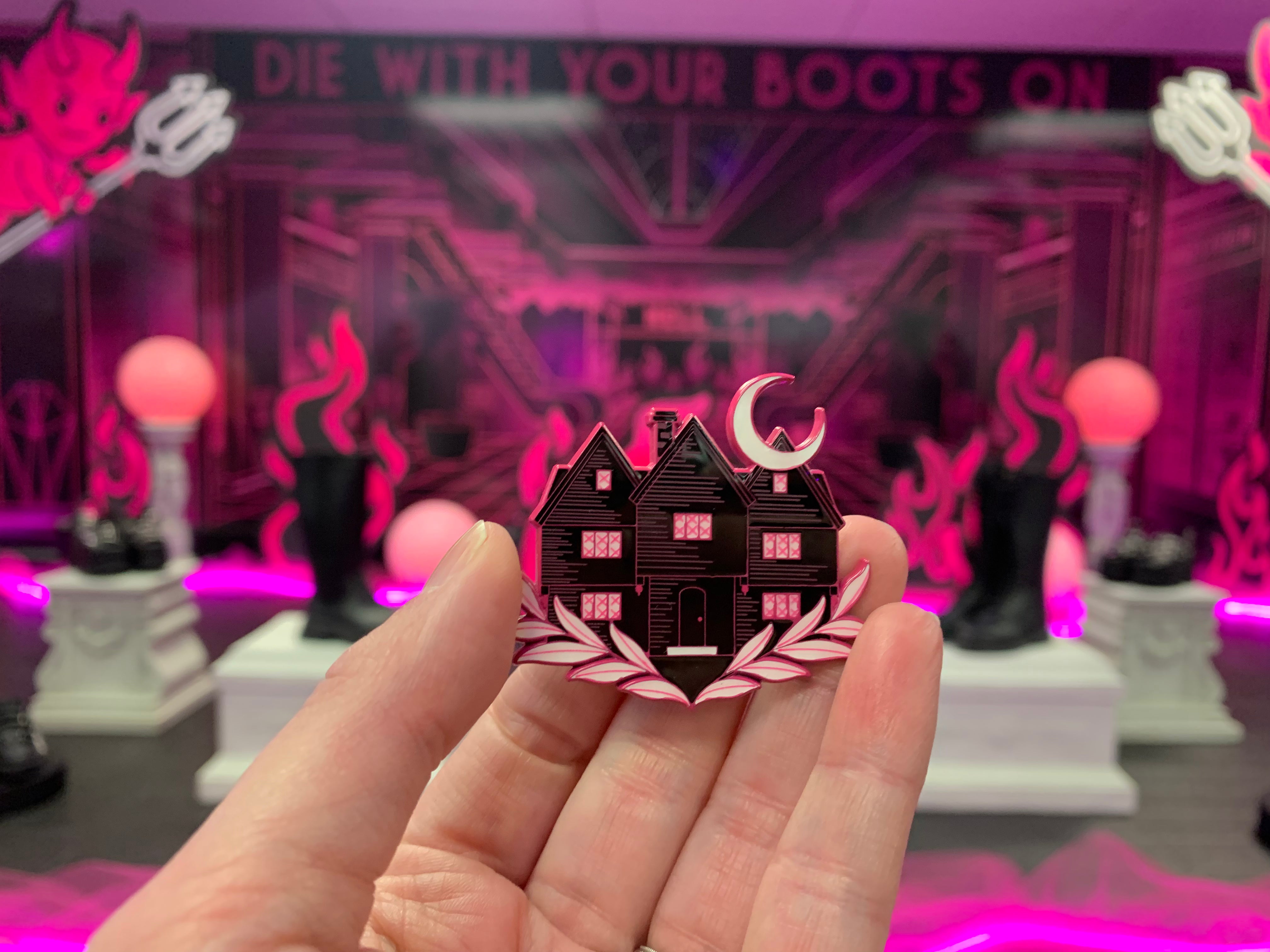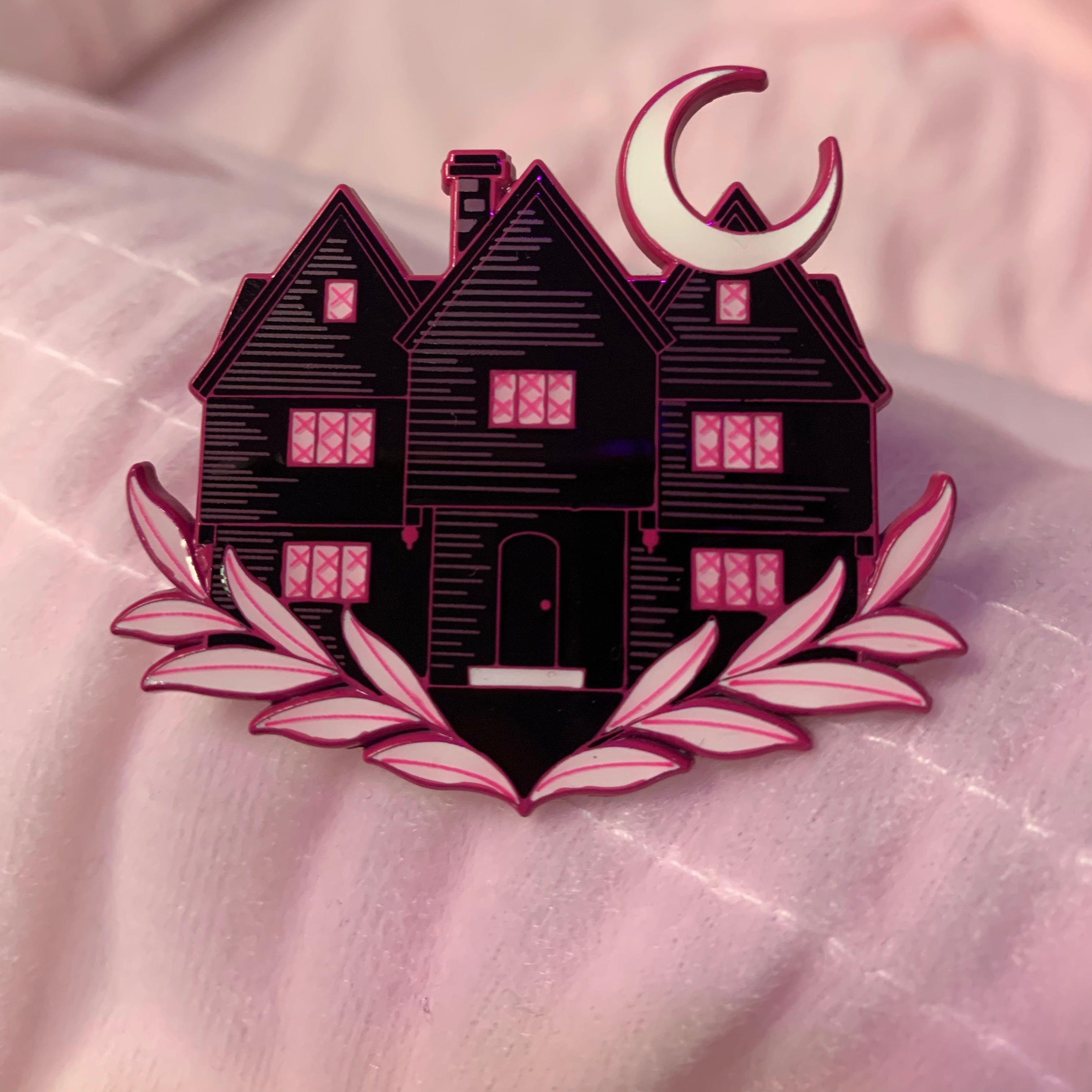 This incredible Witch House lapel pin was made by the amazing Laser Brain Patch Co. aka Lapels & Spells! The Witch House, also known as the Jonathan Corwin House, is located in our hometown of Salem, MA and it near and dear to our heart. Although it was home to one of the judges in the famous Salem Witch Trials, it has become a symbol of the gothic subculture, as well as those of a pagan belief system. The house is now a museum and the only standing structure in Salem with a real connection to the trials. Even though the house has a dark history, we take comfort in knowing that we can learn from the past and even take a little evil joy in the fact that we, as women who might well have been accused ourselves in 1692 can now safely stand on the grounds of, and inside this house and know that simply by doing so, we are going against the ideals of persecution that once held true inside those walls.