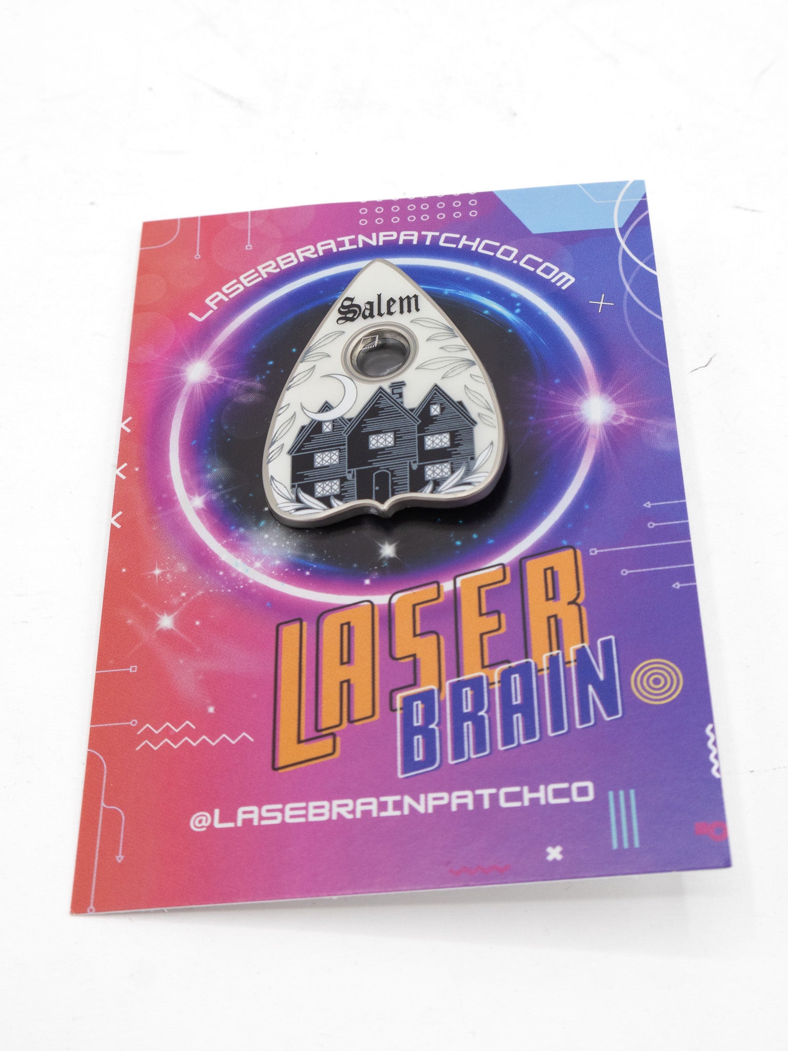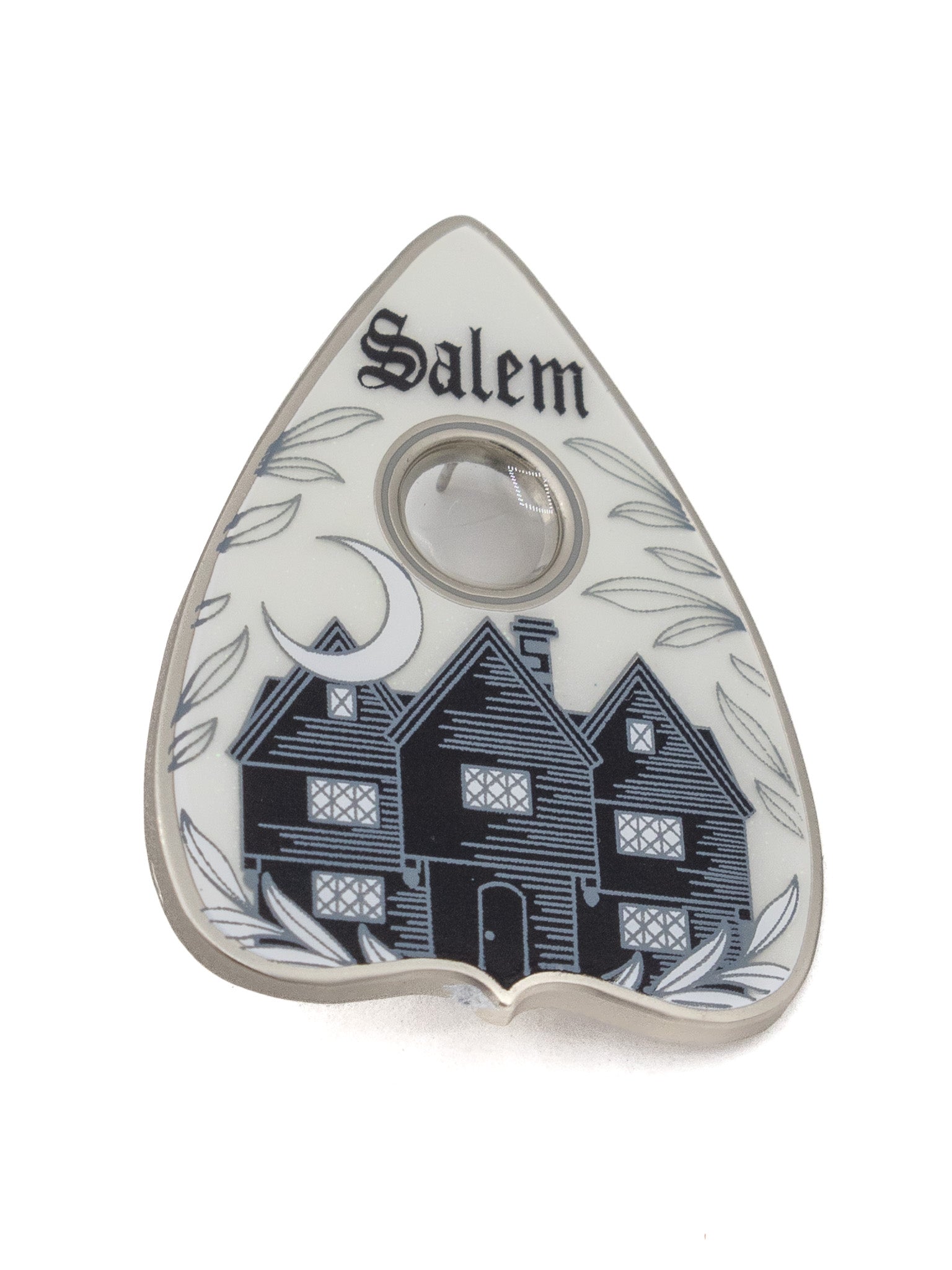 Salem's famous Witch House, on a planchette, complete with clear dome. Measures about 1.5" long.