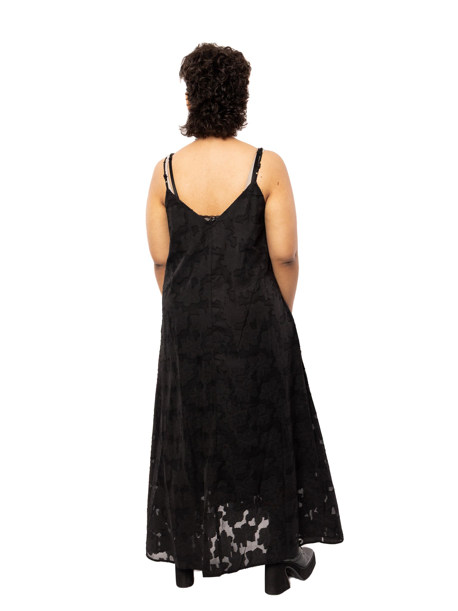 A breezy summer goth dress you'll love! This floral embroidered slip dress has a loose, roomy fit and is made of a lightweight sheer fabric with a partial lining. It has adjustable straps and pockets.