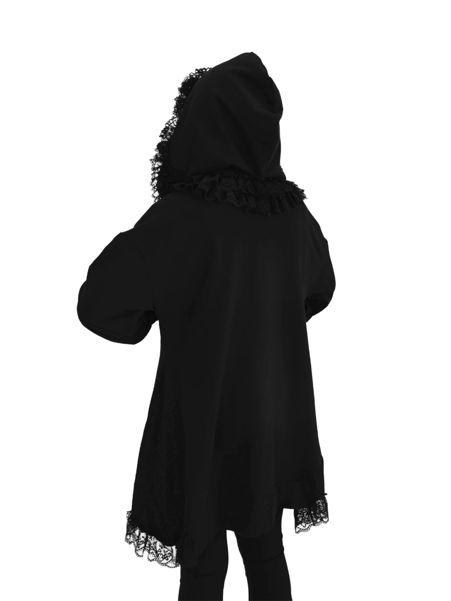 Made out of a soft french terry with ruffled lace detailing throughout.