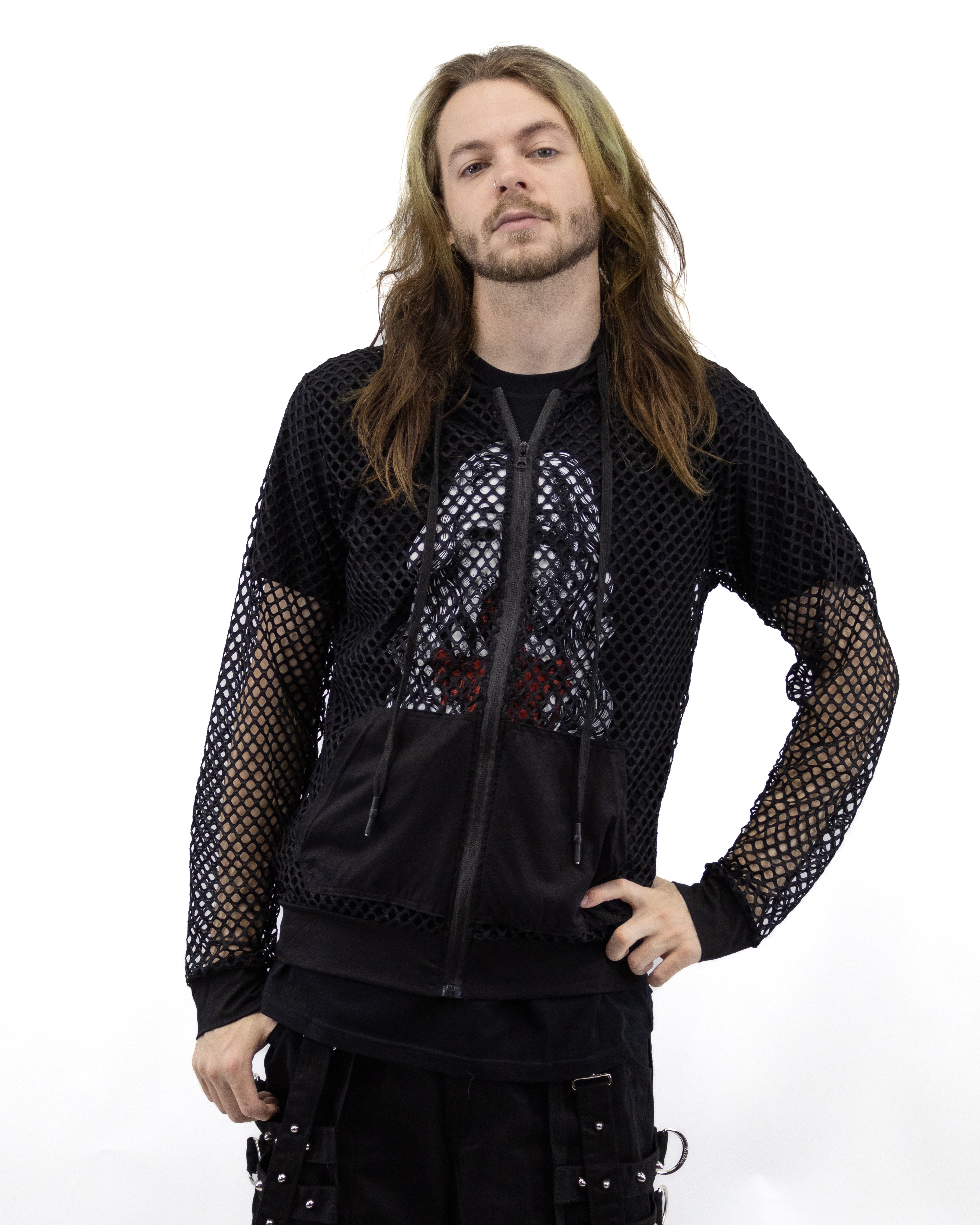 Soft and durable fishnet: one of Knobs' most popular fabrics! See thru fishnet with front solid pocket, zippered closure, and hood. Perfect for layering!