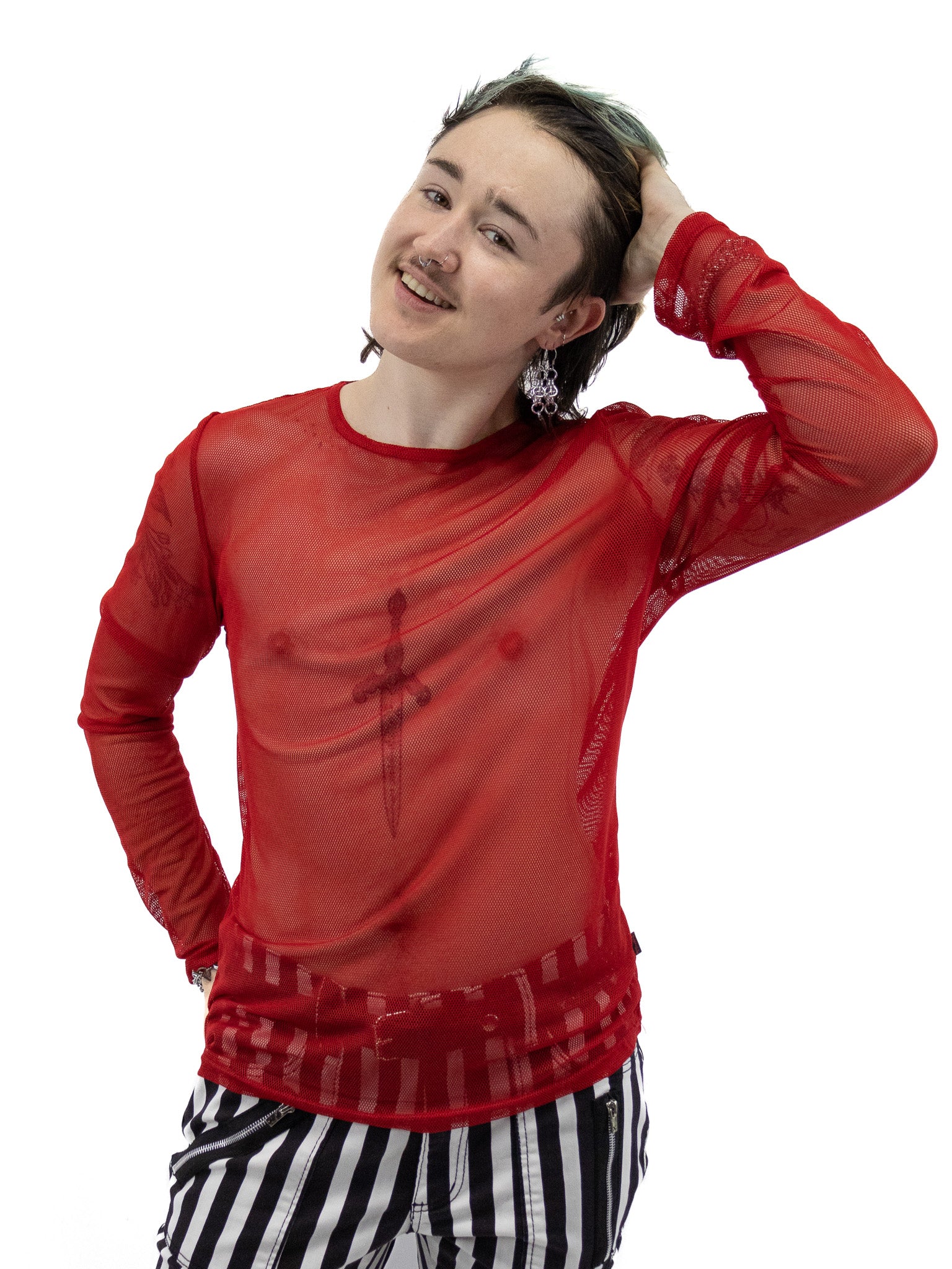A Tripp NYC classic; this staple has been worn by rock royalty for decades! Stretchy and fitted, this scoop neck top with a soft mesh body has elastic banding at the neck & sleeves so you can easily slip it on and off.