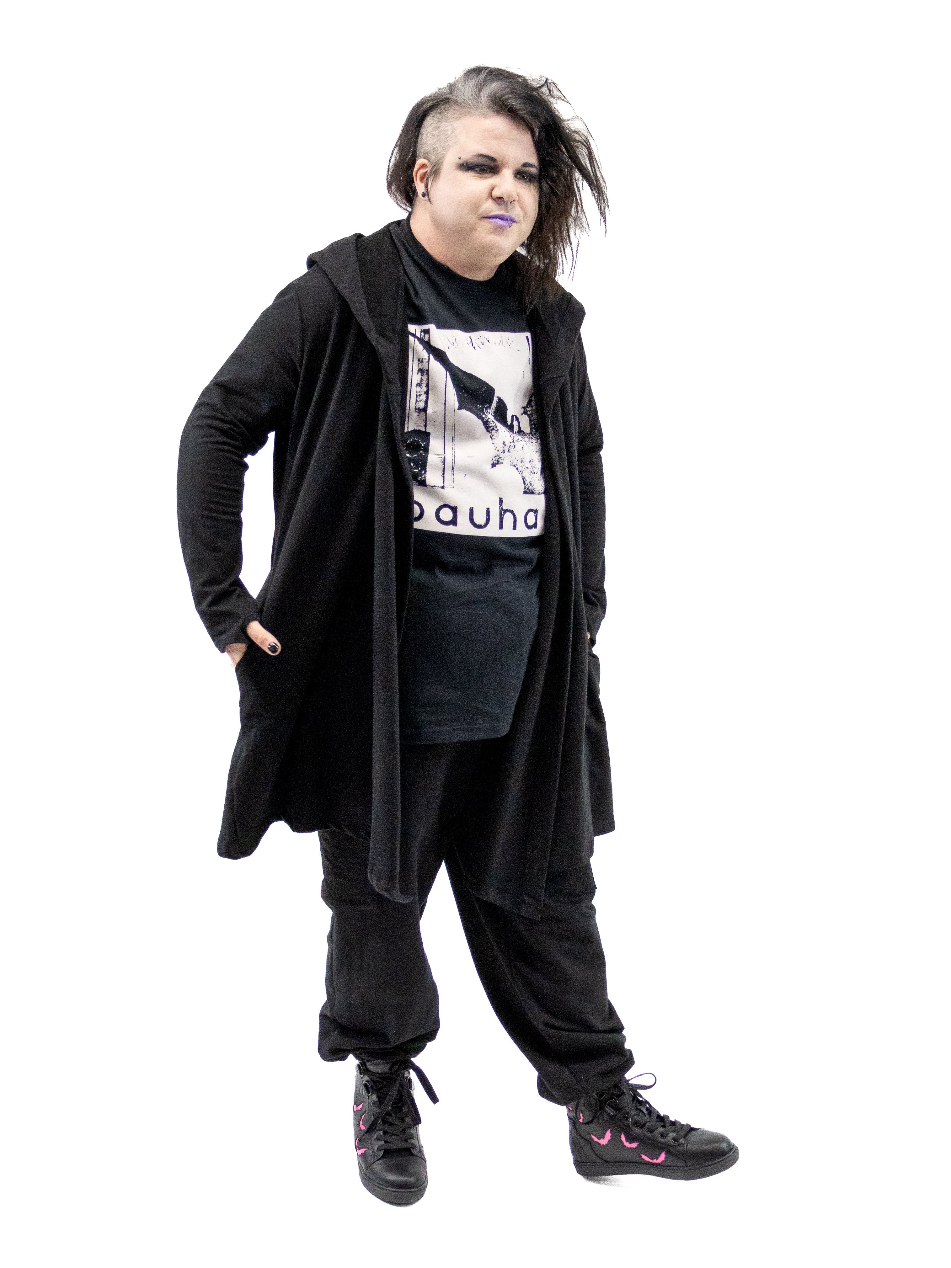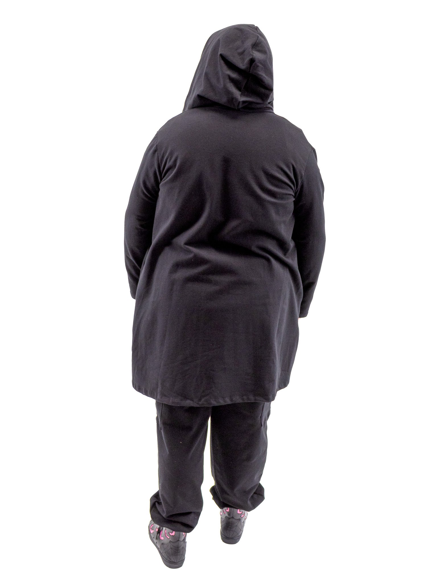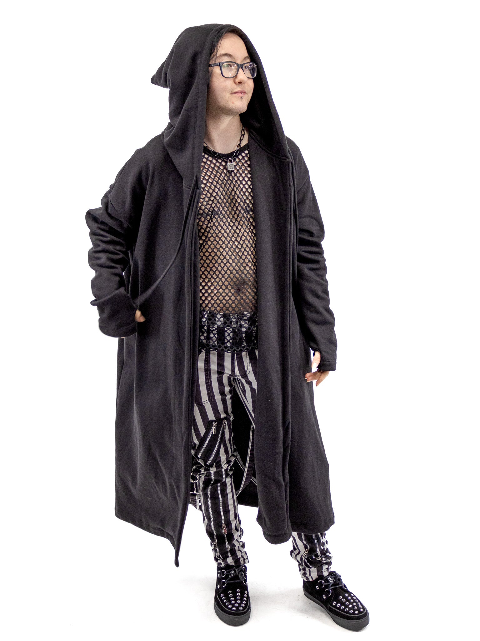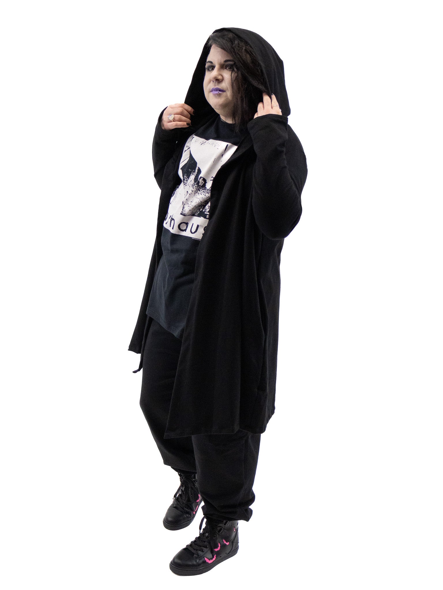Same oversized hood, thumbholes and side pockets (of course), with slightly more drama in front.