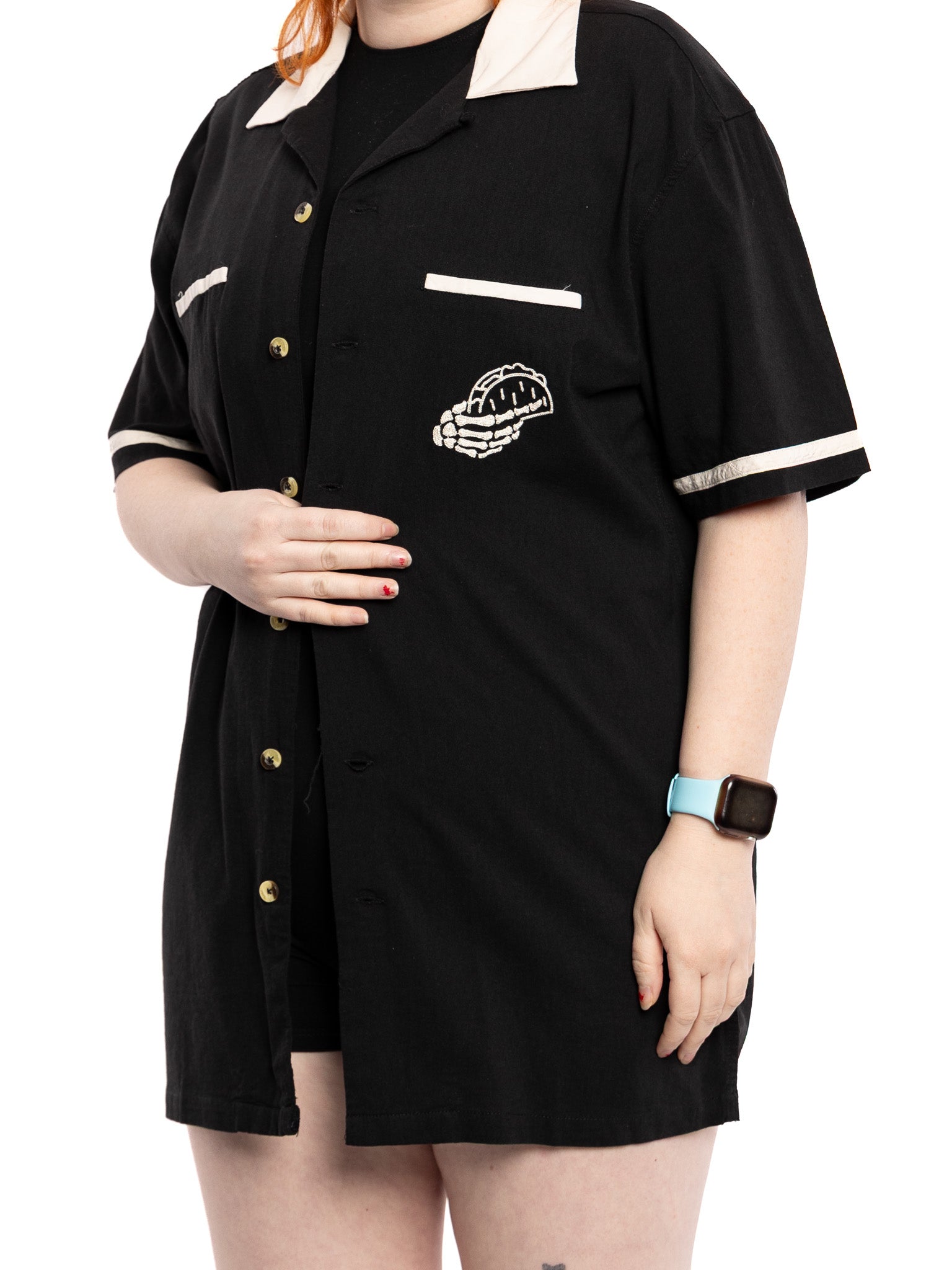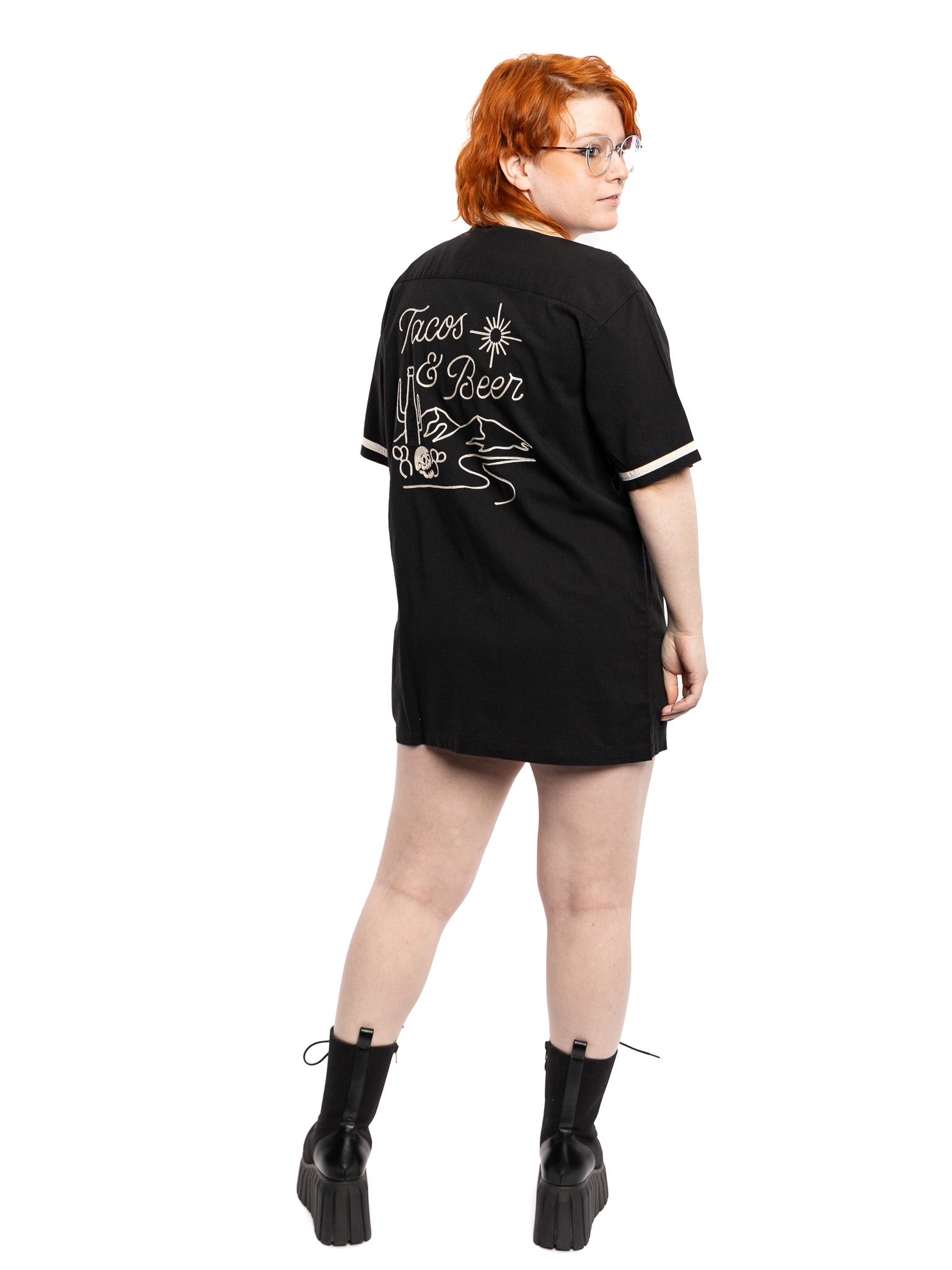The only way tacos & beer gets any better is when consumed while wearing this comfy, button-up shirt. This button-up shirt features a contrasting cream collar as well as front and back chainstitch embroidery.
