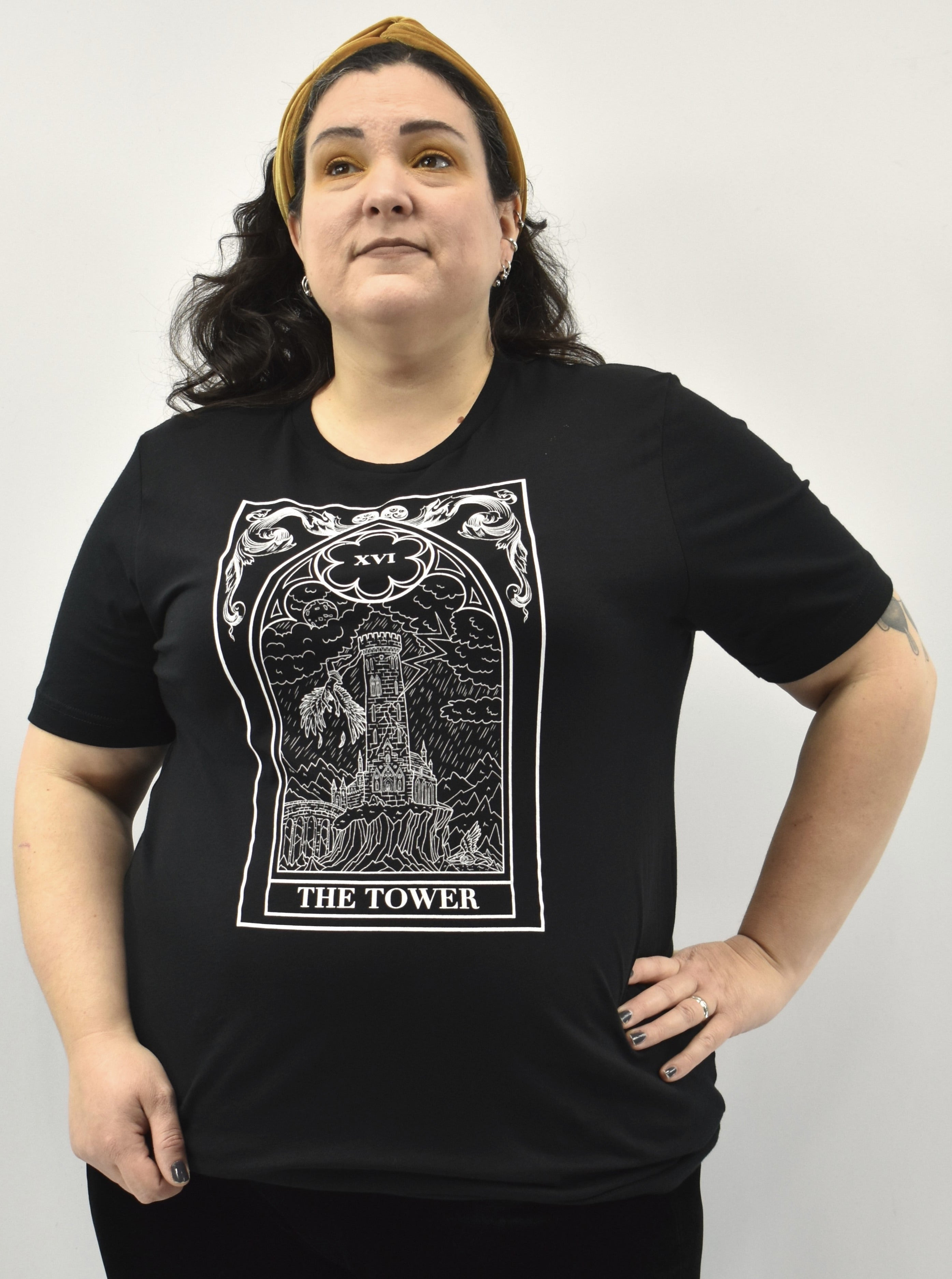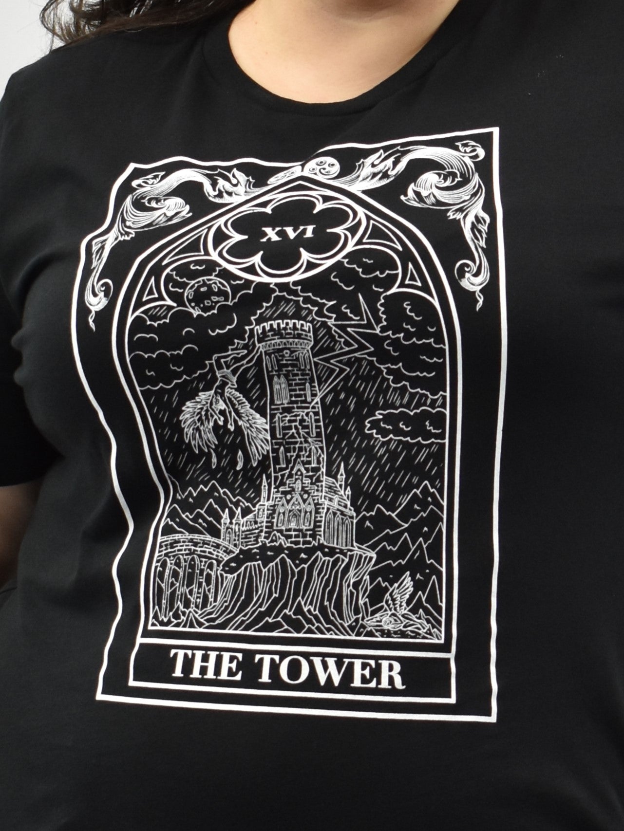 This printed tee comes in black for a stand-out look you'll love, and it features The Pretty Cult's exclusive Tower tarot card on front. The crew neckline and 100% cotton construction make this tee comfortable for all-day wear, and the short-sleeve cut means it's perfect for layering. Wear this tee with your favorite denim or leggings for an easy-to-wear look you'll love!