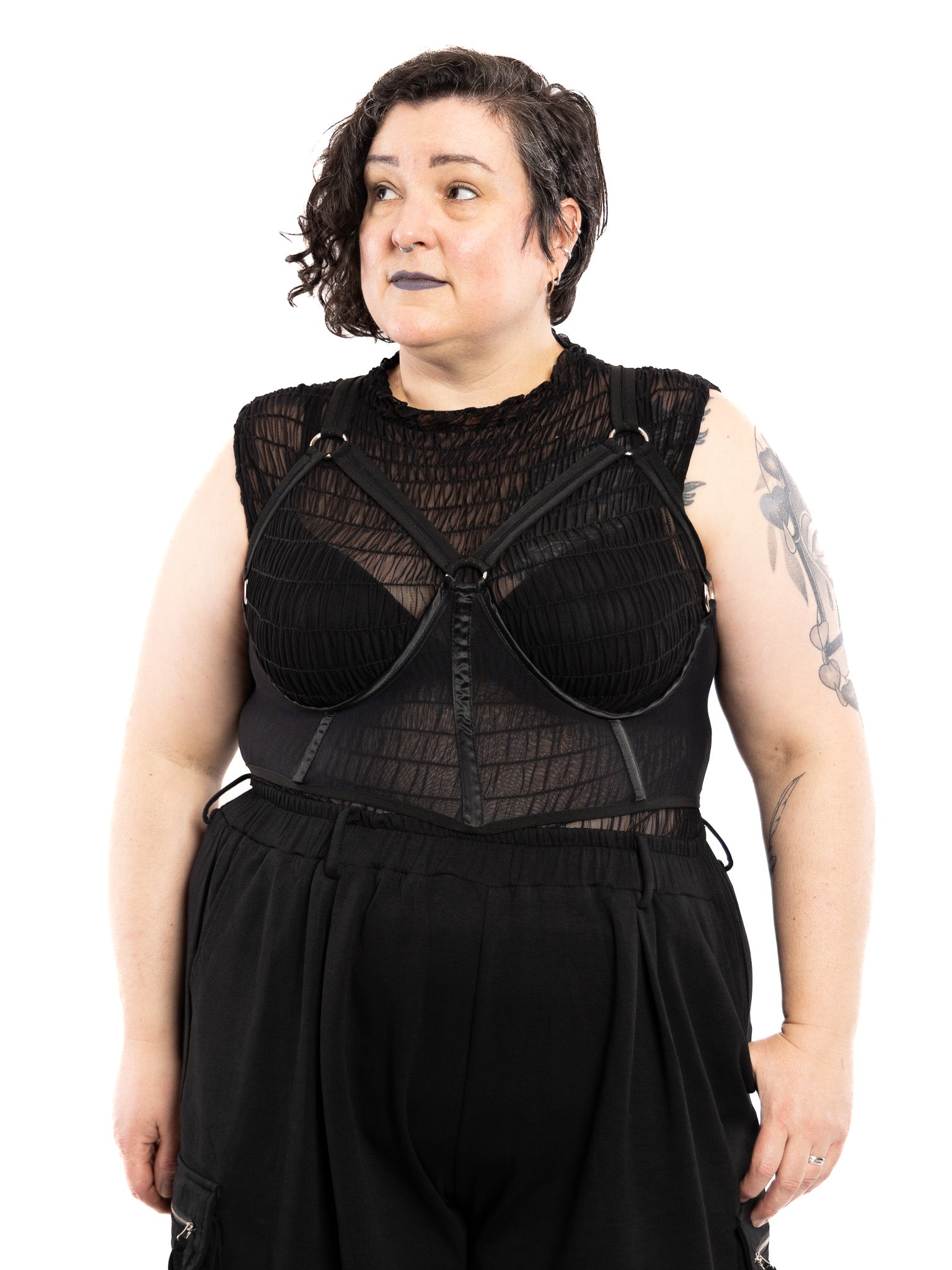 Sheer, stretchy, and perfect for layering! Under bust cincher corset made of high quality mesh fabric.