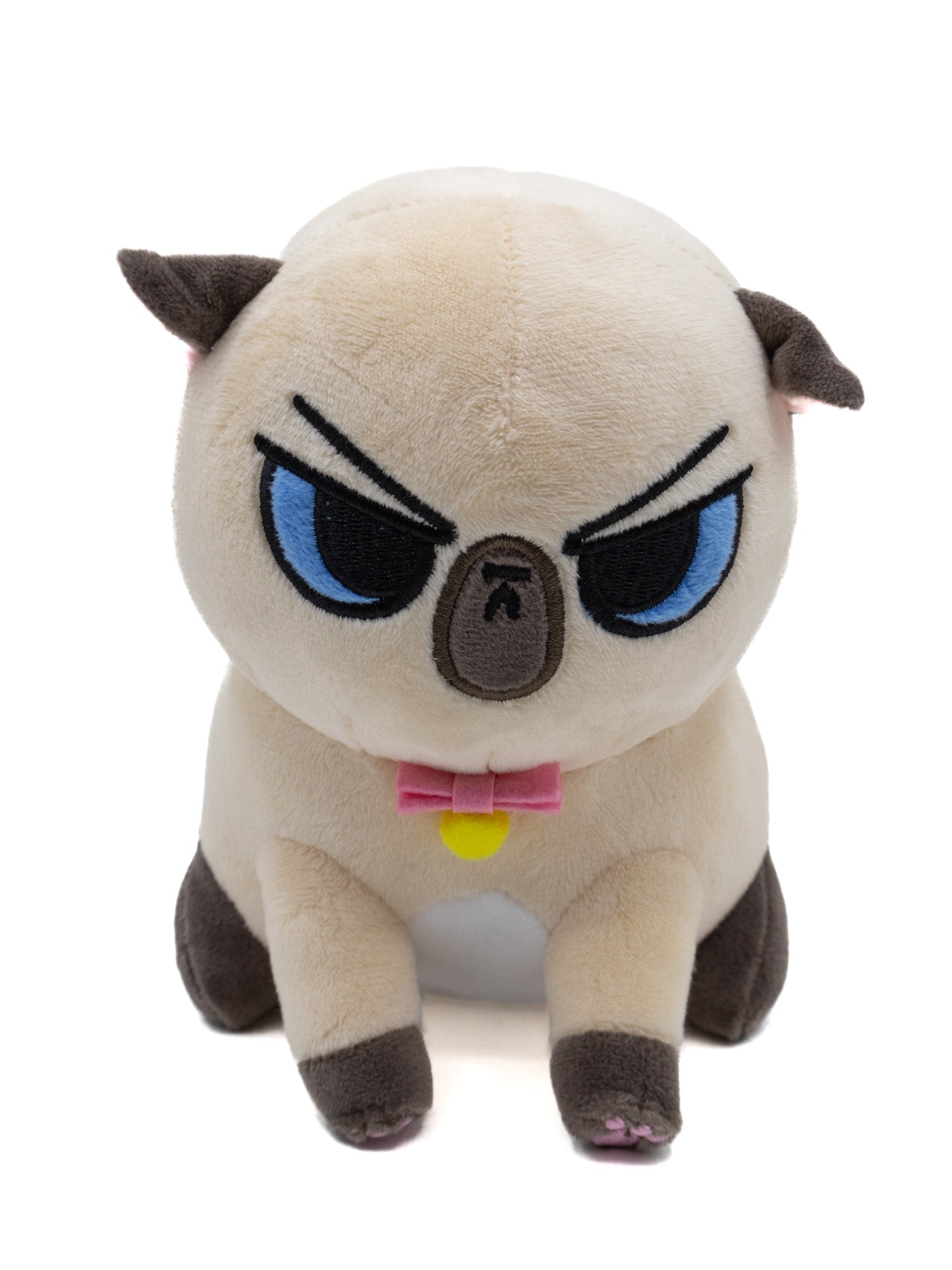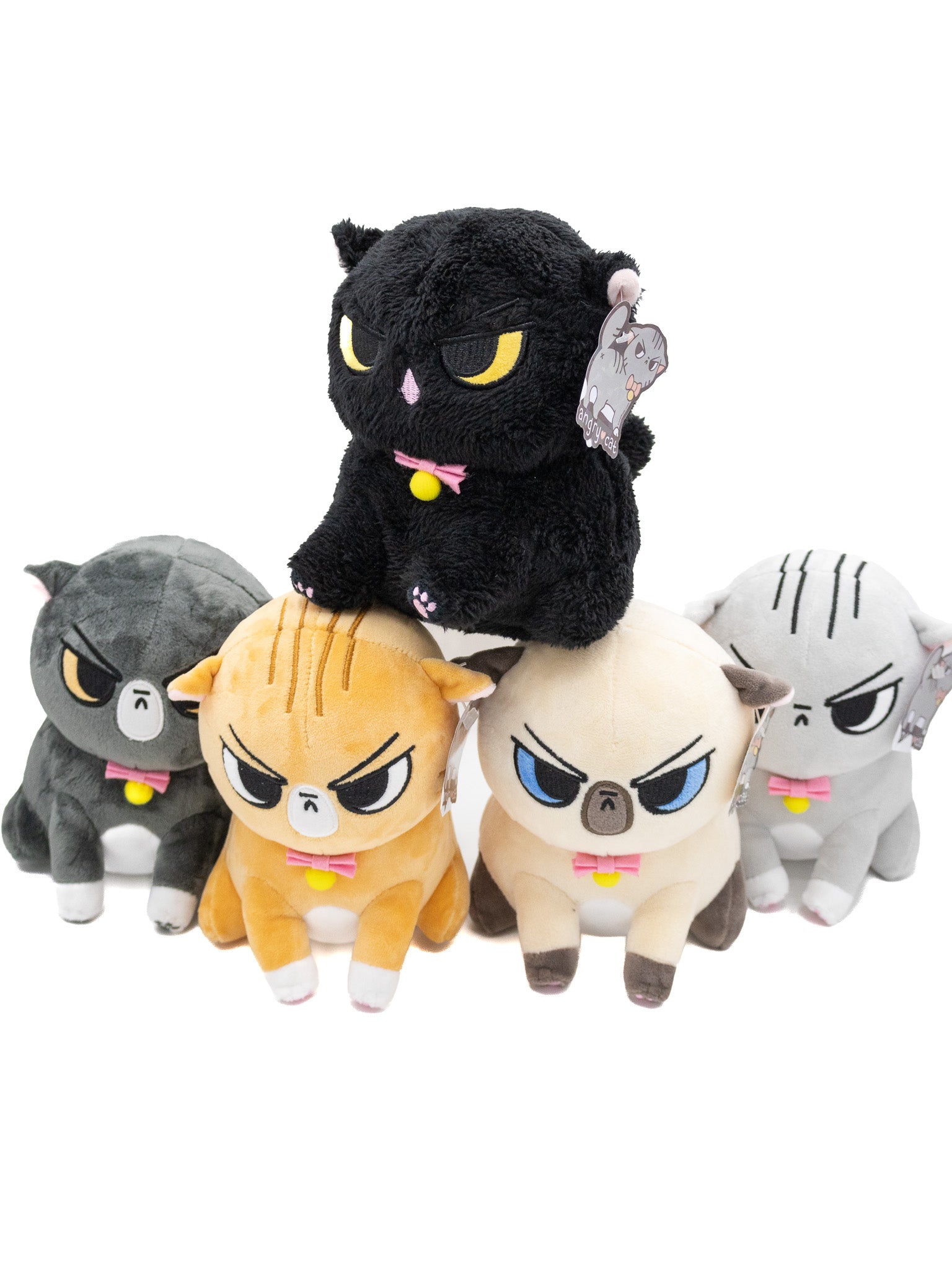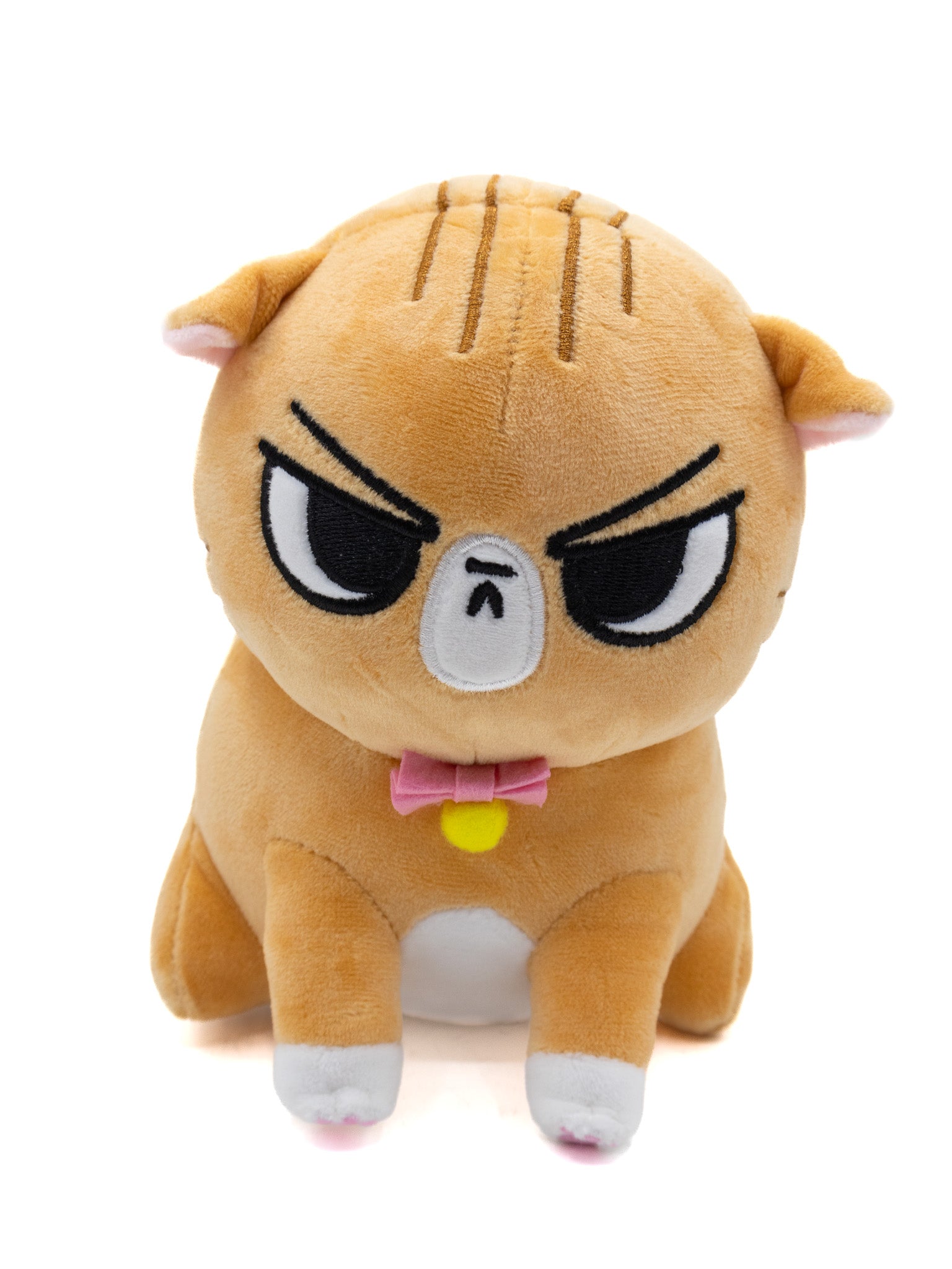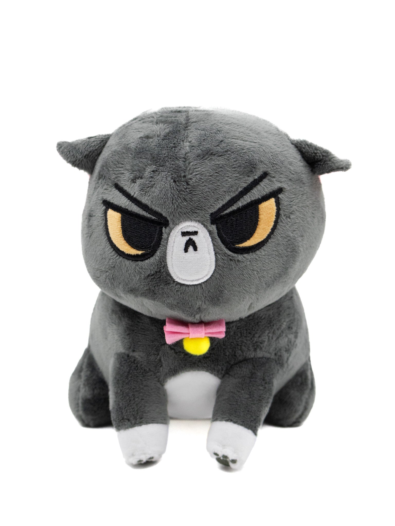 Angry Cat is about 6.5 inches of pure, hypoallergenic rage. Each comes wearing a felt bow tie with felt bell. This version comes with tiny lil front paws complete with embroidered toe beans. He still has a round body with little stubby back legs, perfectly friend-shaped!