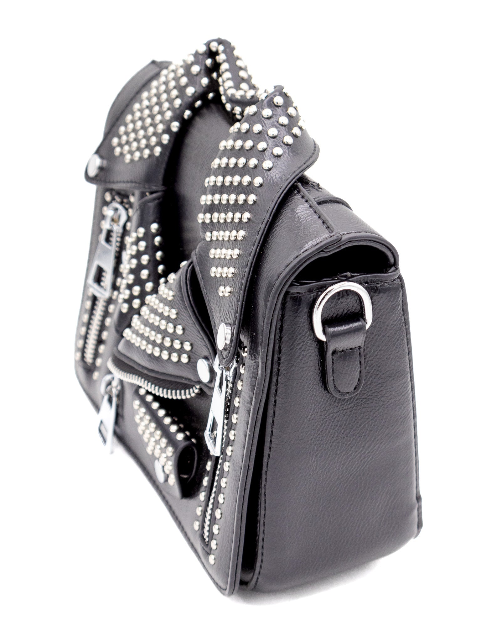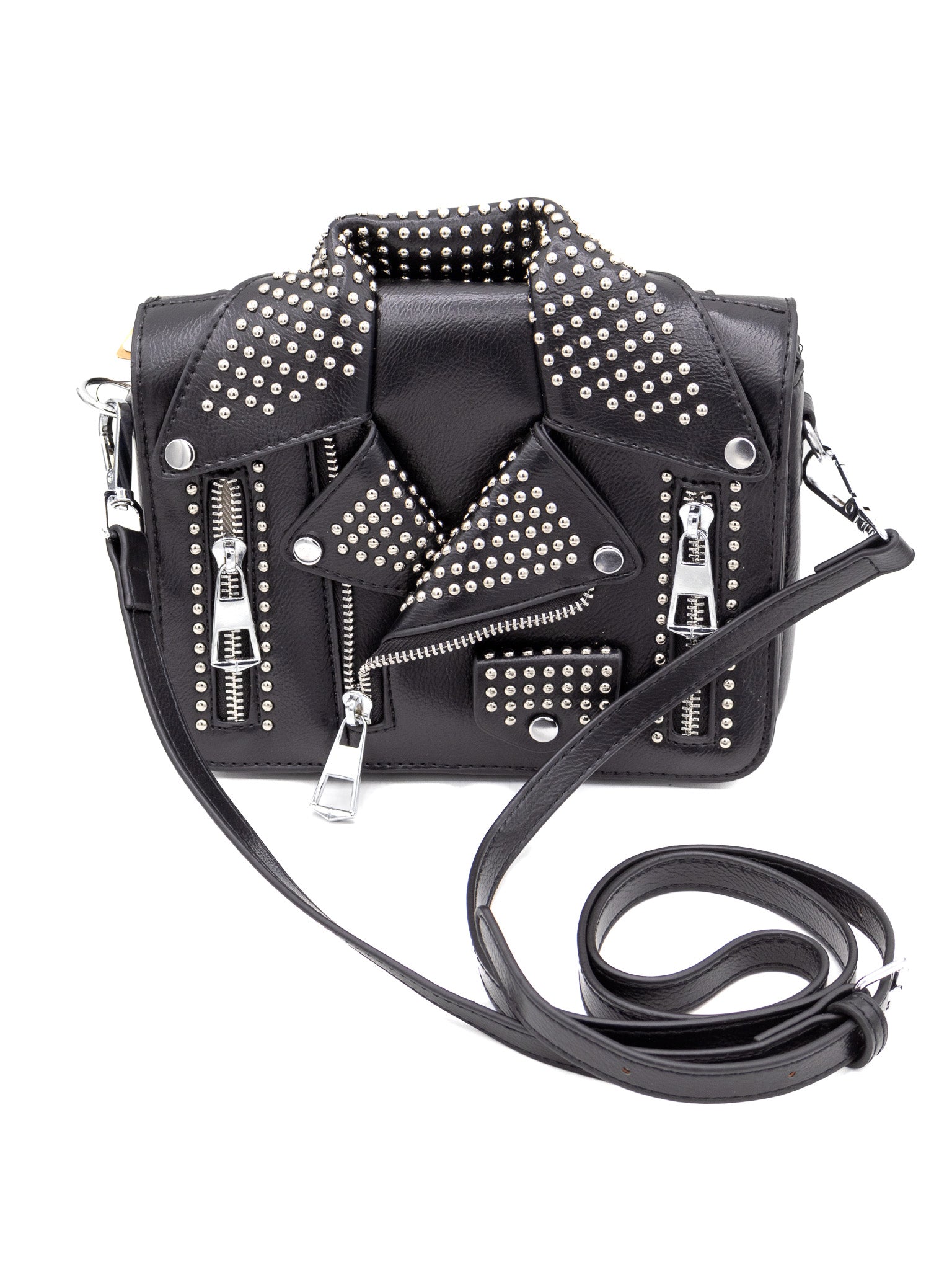 This crossbody handbag is perfect for the hard femme. Soft pleather with studded details makes it a real statement piece but the compact size fits everything you need without being a hassle to carry. Removable strap so you can also use it as a clutch!