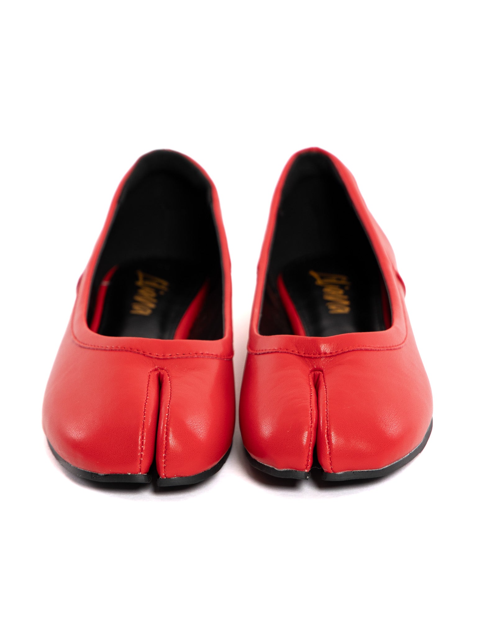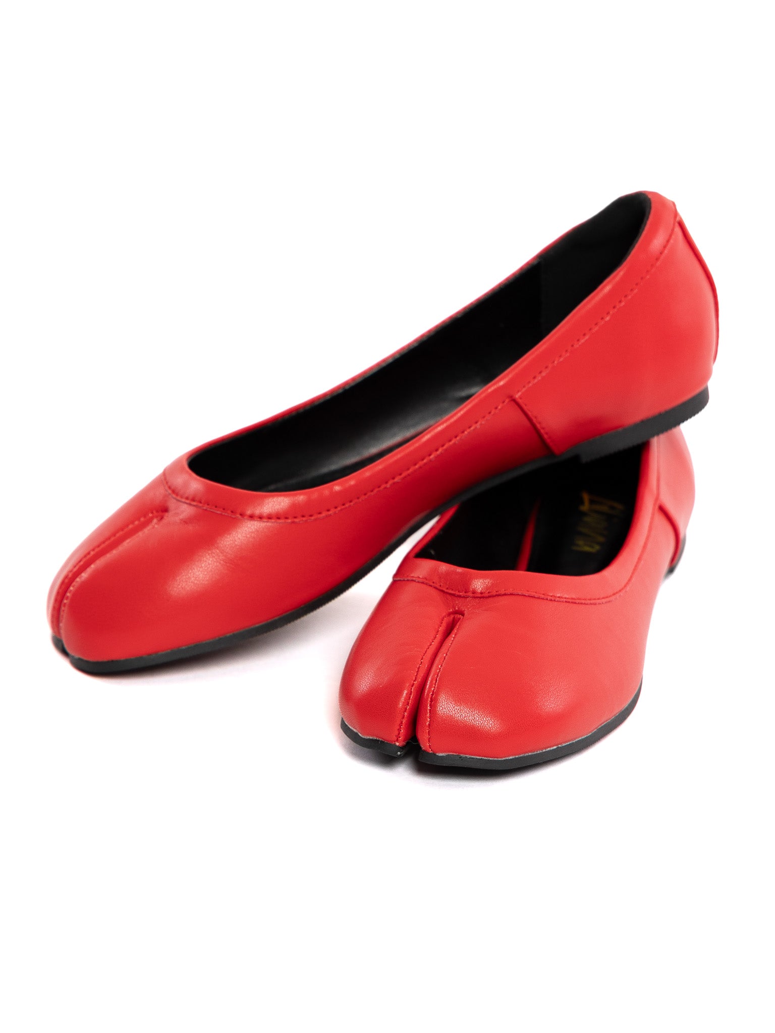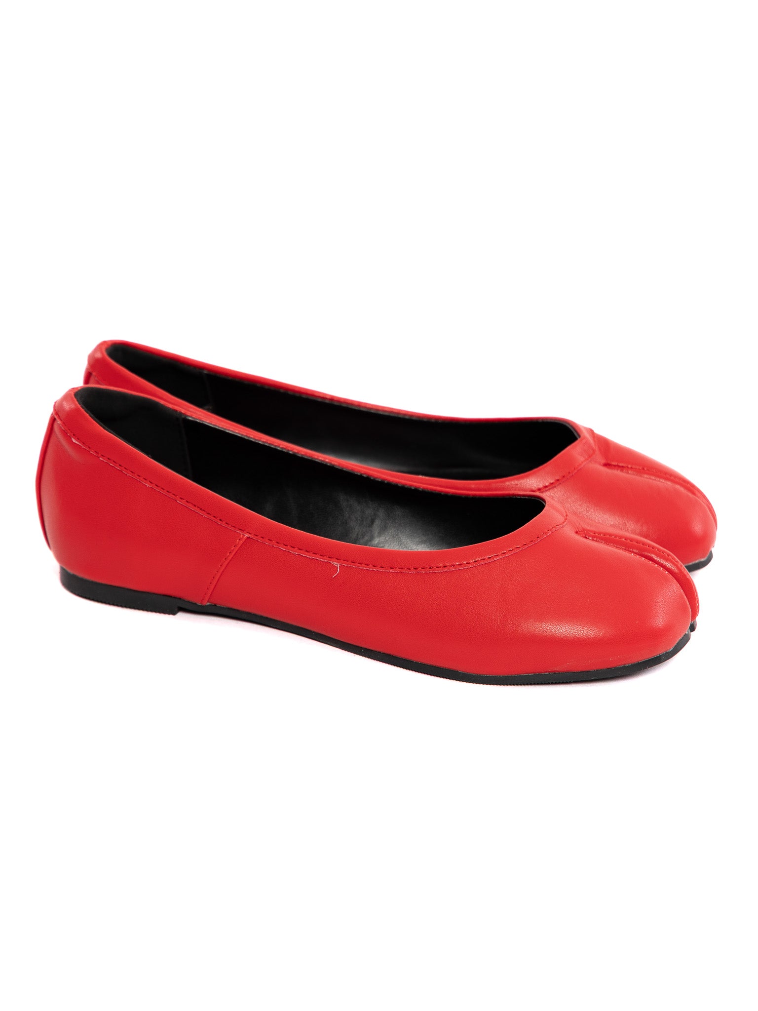 Although a bit strange at first, the striking red color and even more striking shape make these flats a total statement piece! Wear with split-toe socks or without socks for maximum comfort.