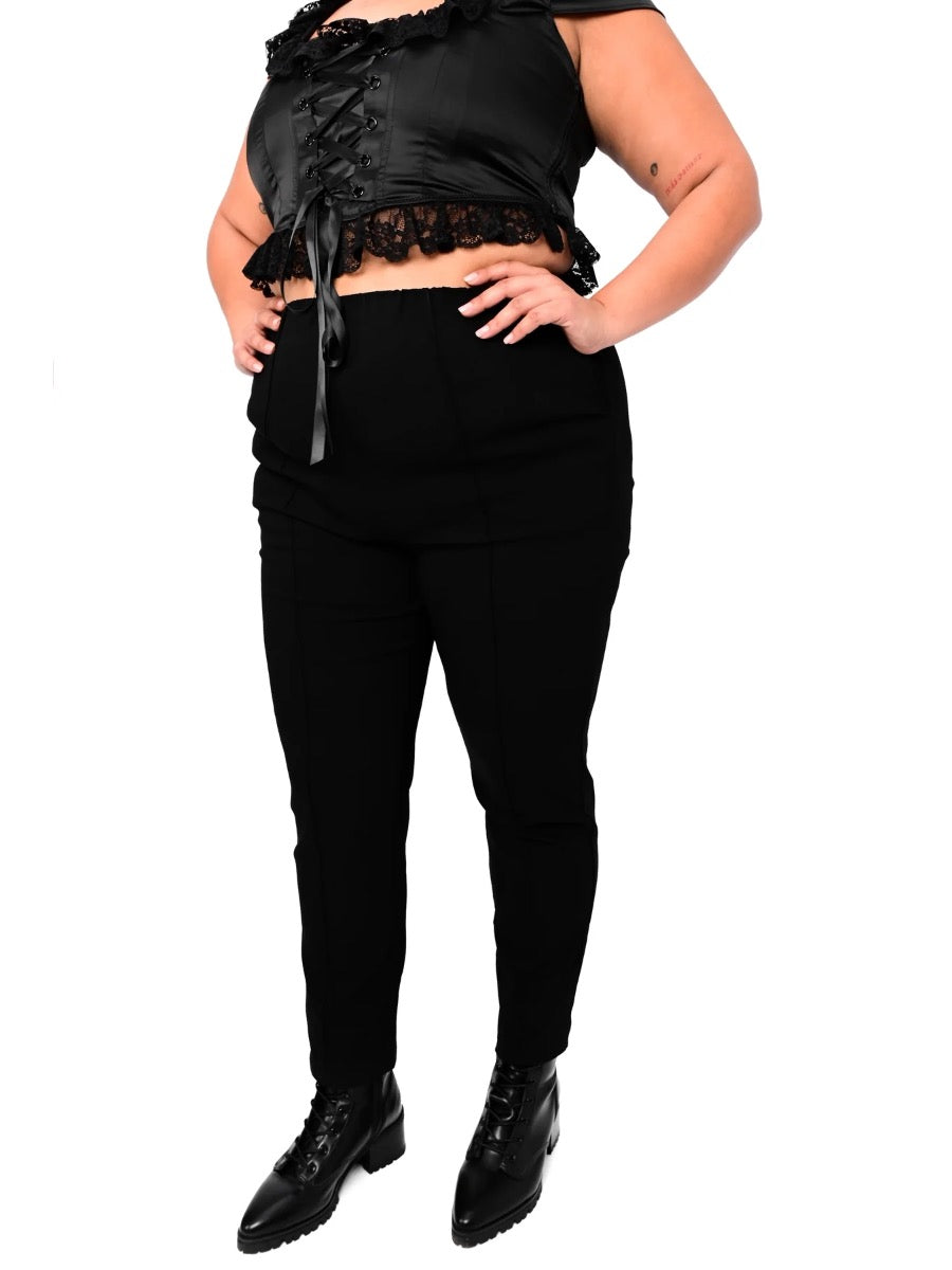 High waisted with an invisible elastic waistband and deep pockets.