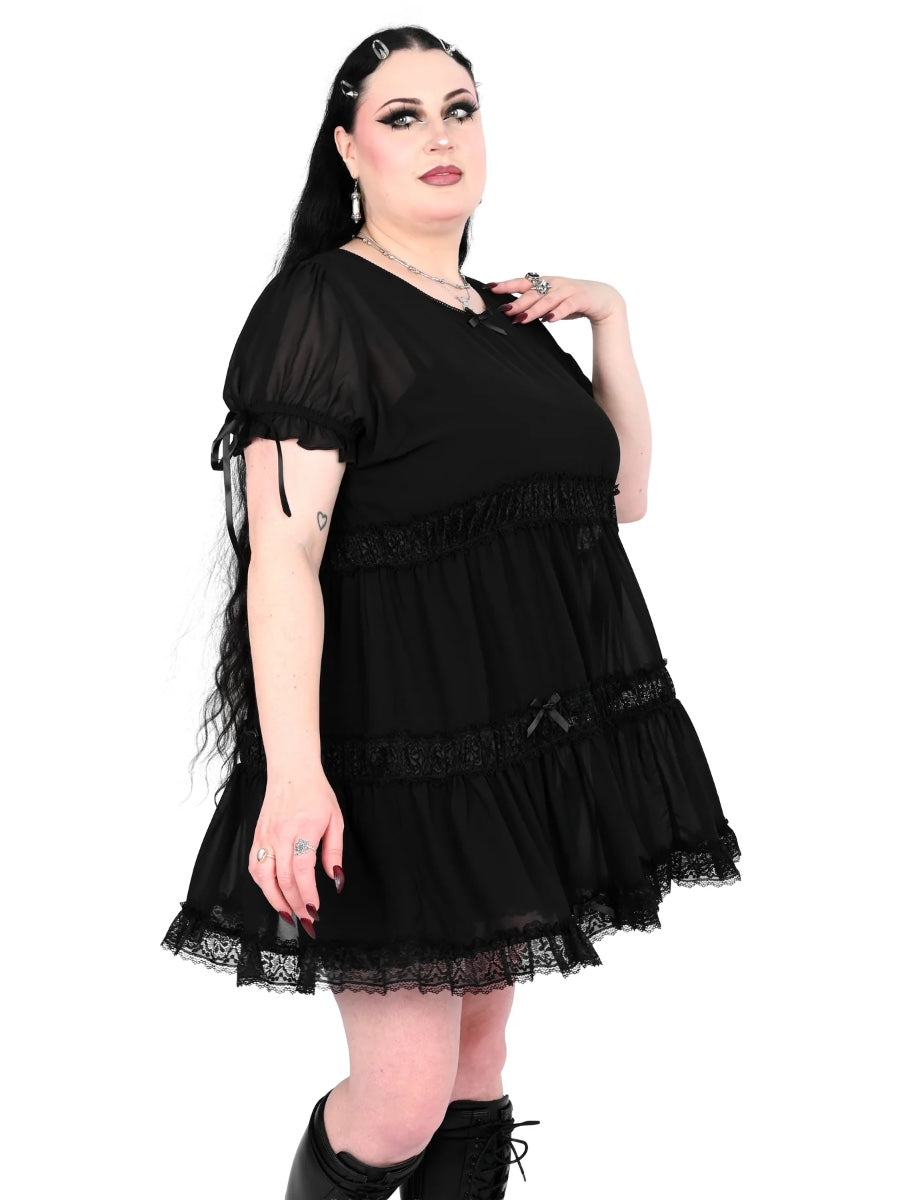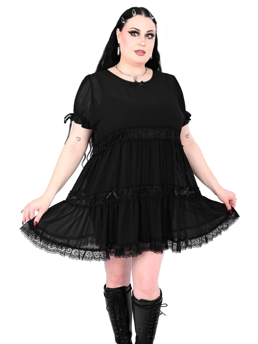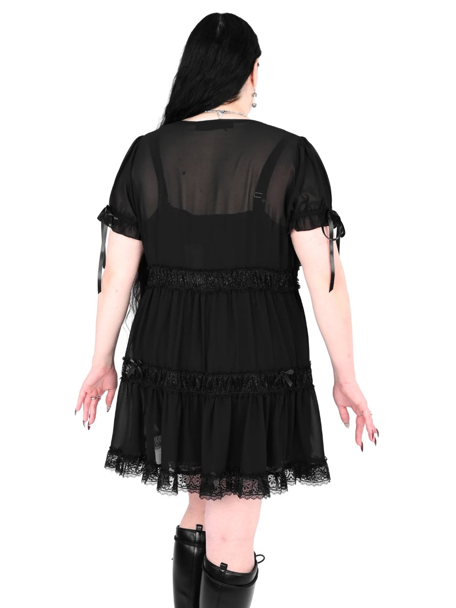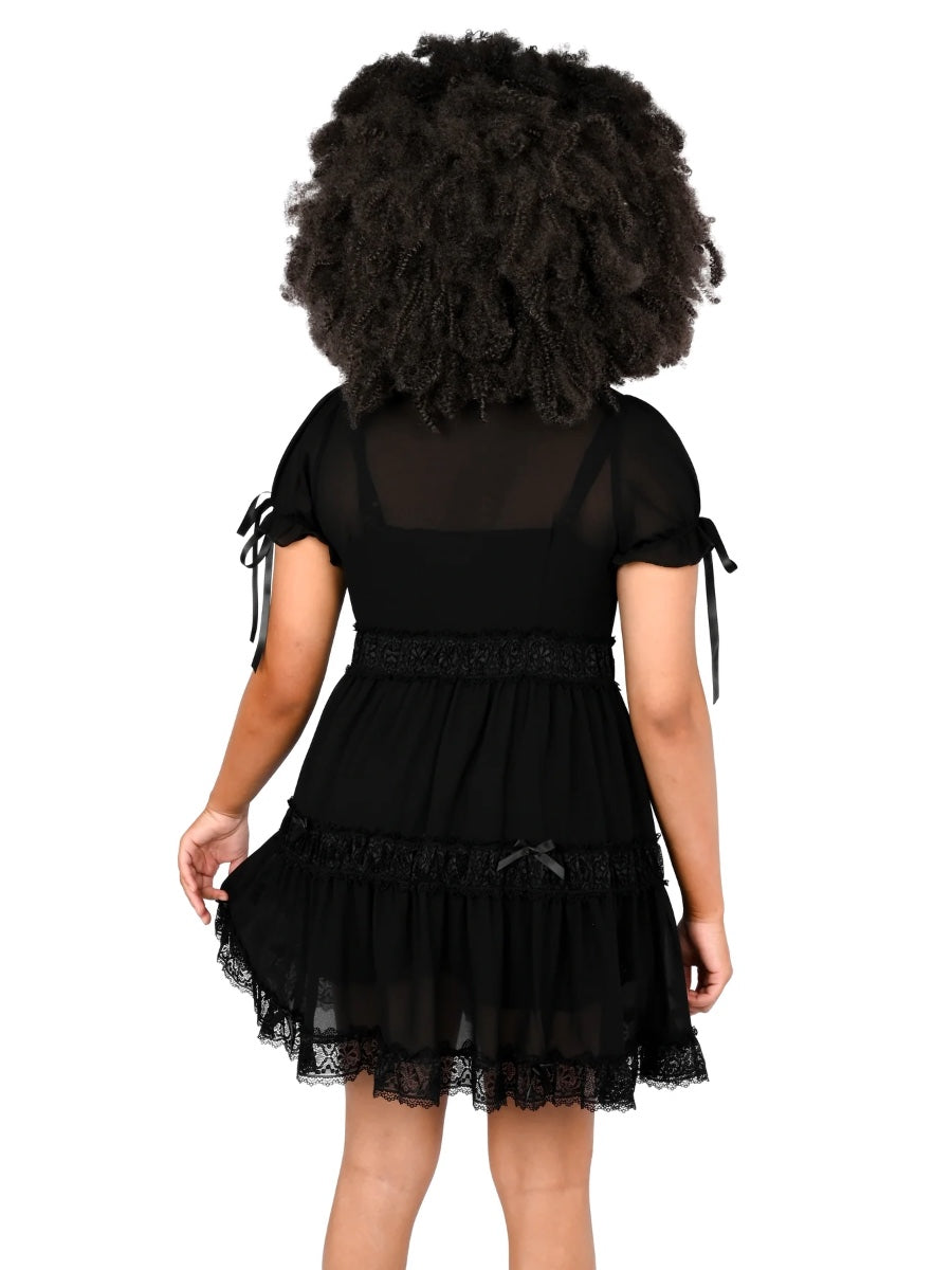 This dress is fully sheer! Style it over bloomers and a bralette, a bodysuit, nothing at all etc. We don't make the rules.