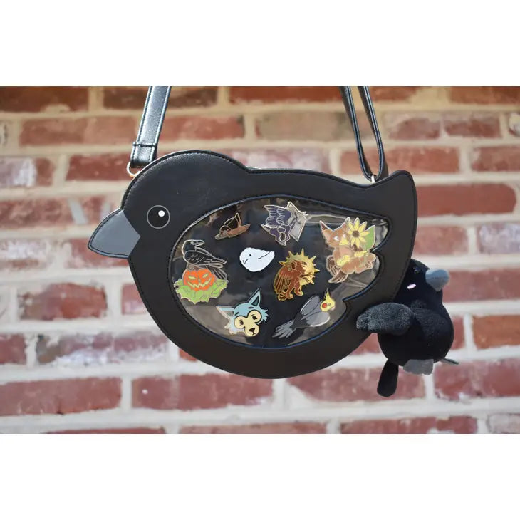 This little birdie told us that it will gladly hang around and hold your stuff. It also includes a clear window with an insert to display your pin collection.