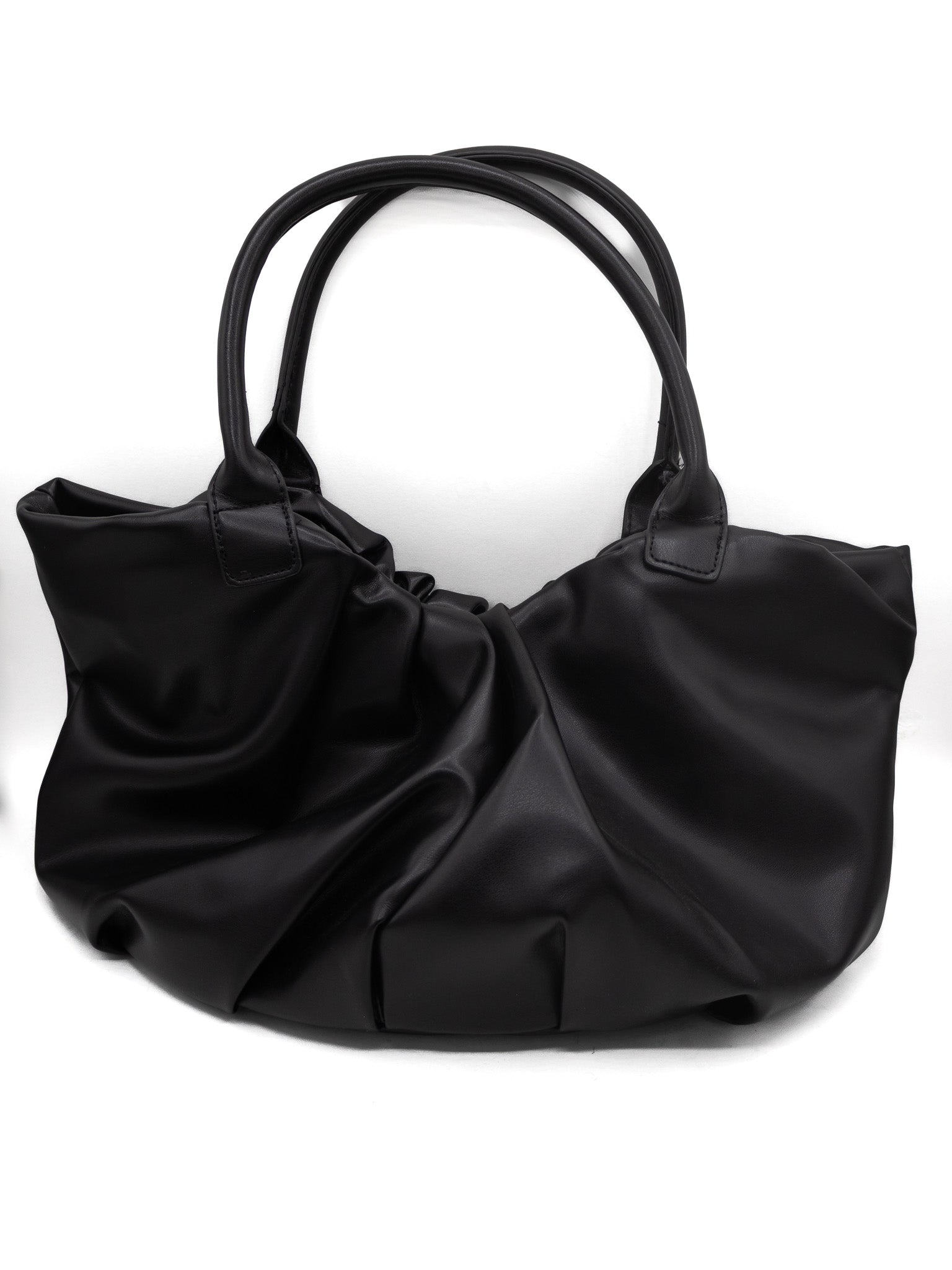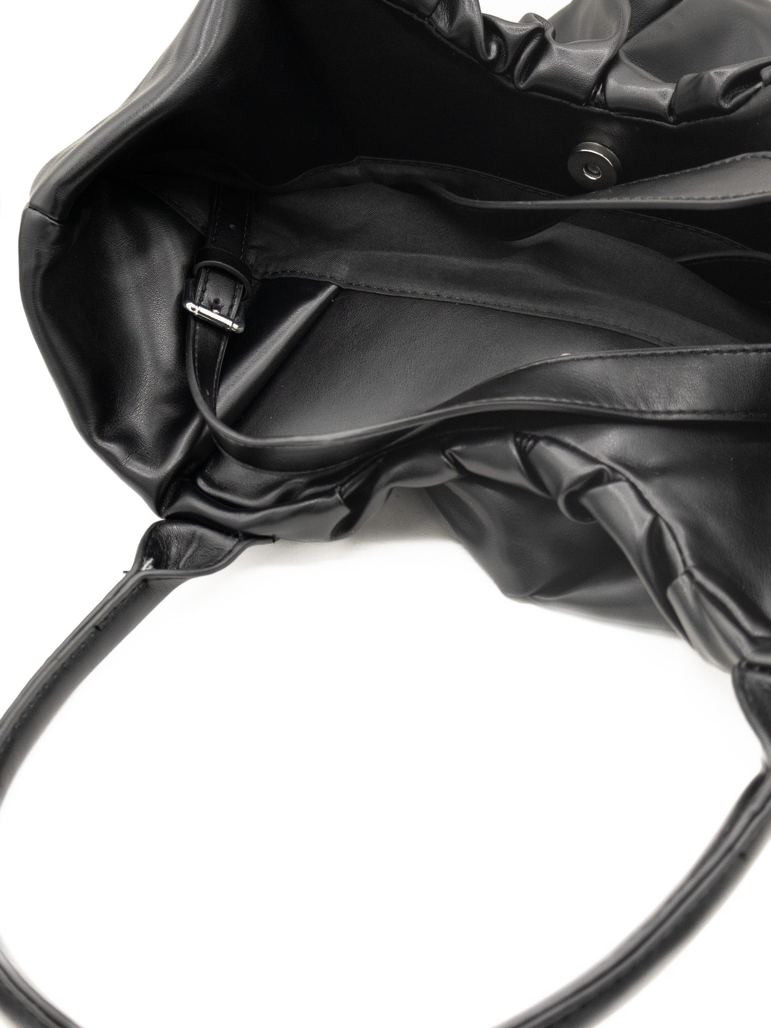 This bag is perfect for carrying all your necessities! Between the soft ruched faux leather body, flat bottom, and inner zip pocket you'll be surprised how much you can fit inside it!