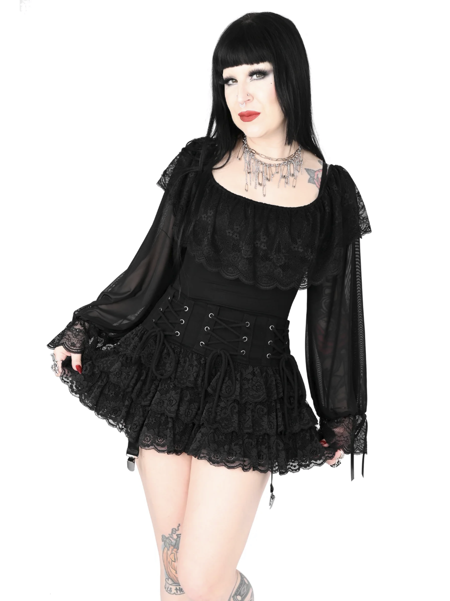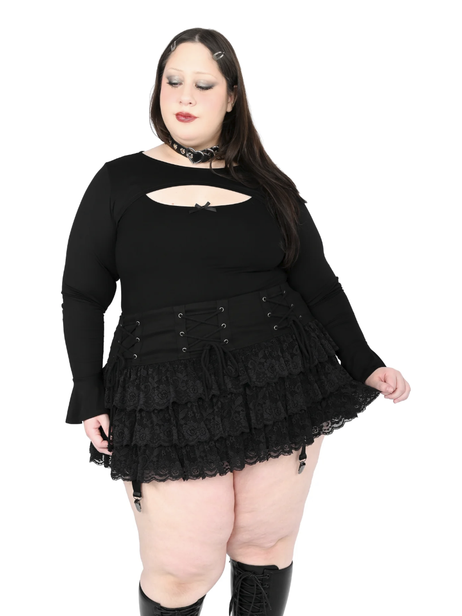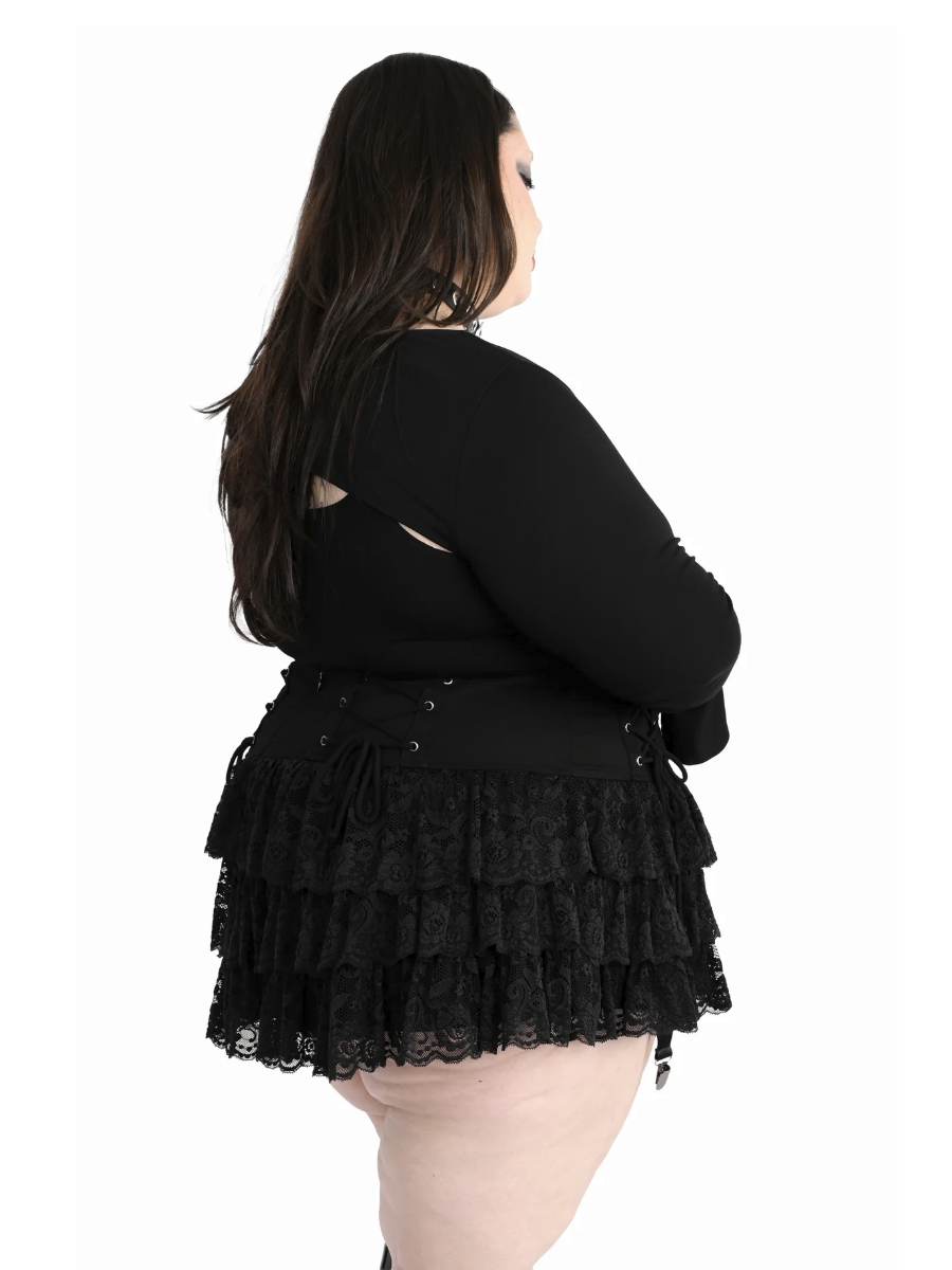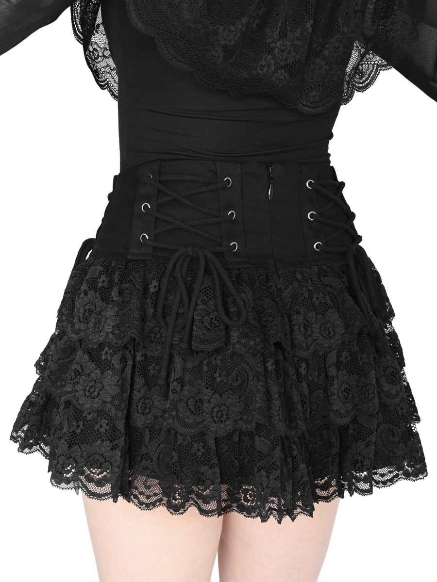 Mini skirt with adjustable lacing on the hip and ruffly lace.