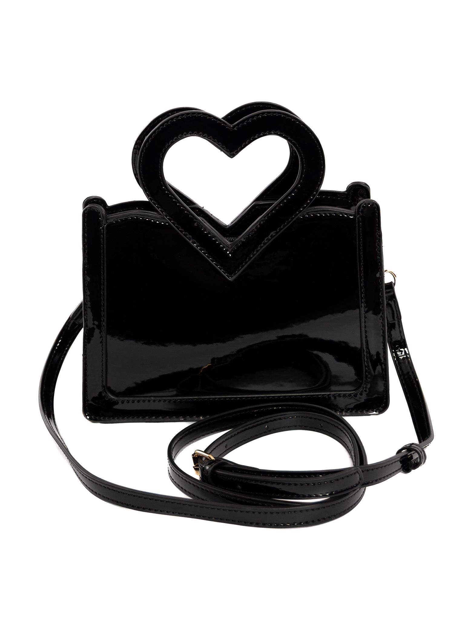 This sweet little bag will capture your heart. Zipper closure. Removable adjustable crossbody strap. Also available in pink and red!