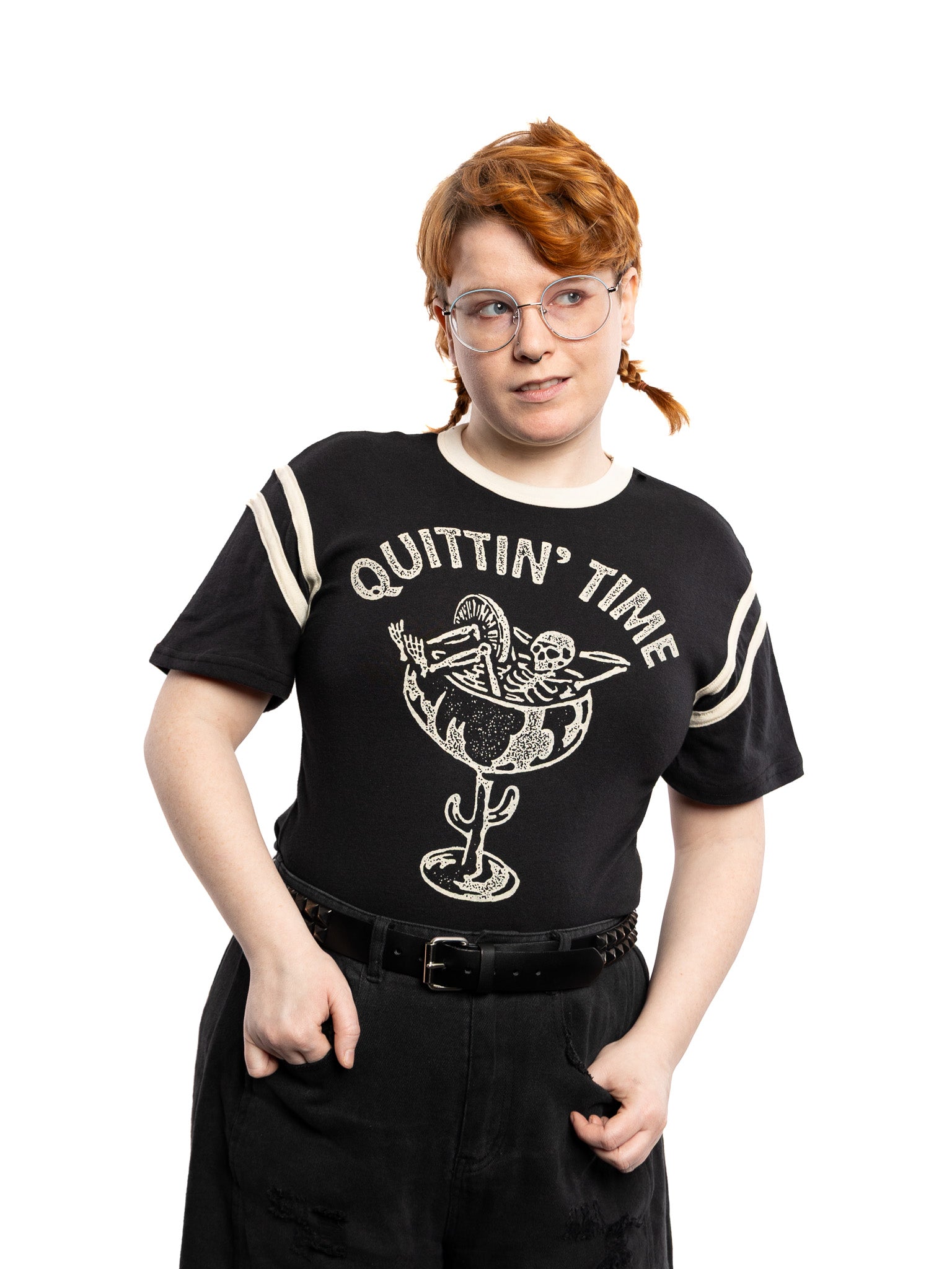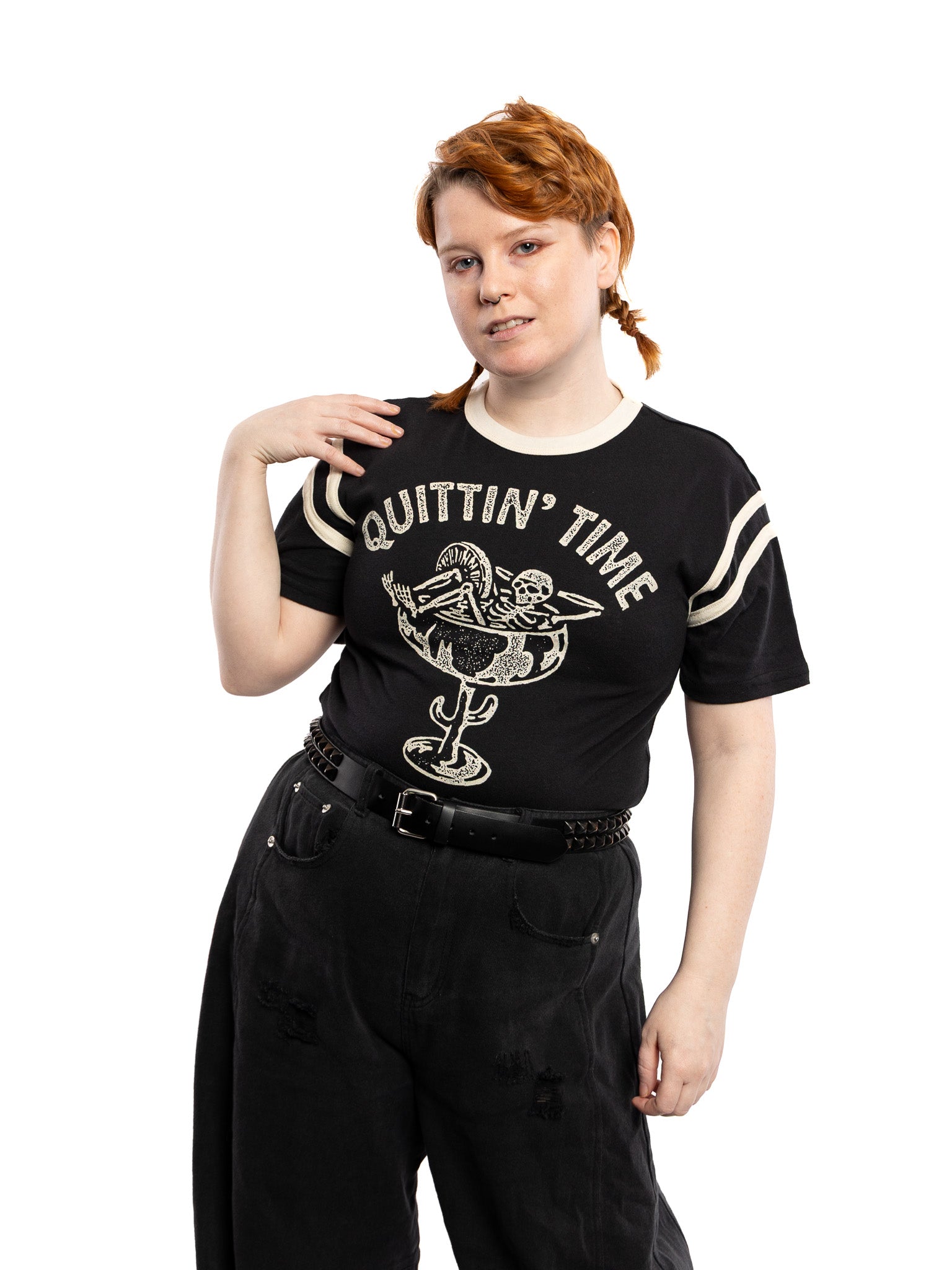 You know it's just about that time in this super-soft graphic t-shirt made of vintage-inspired cotton blend fabric.