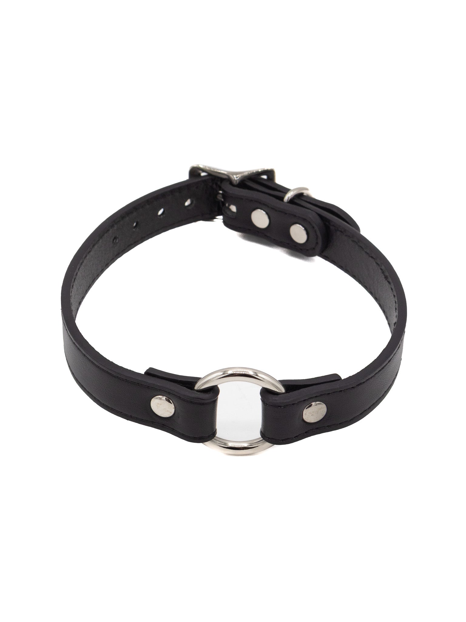 3/4" wide black genuine leather choker with back buckle for easy adjustment.