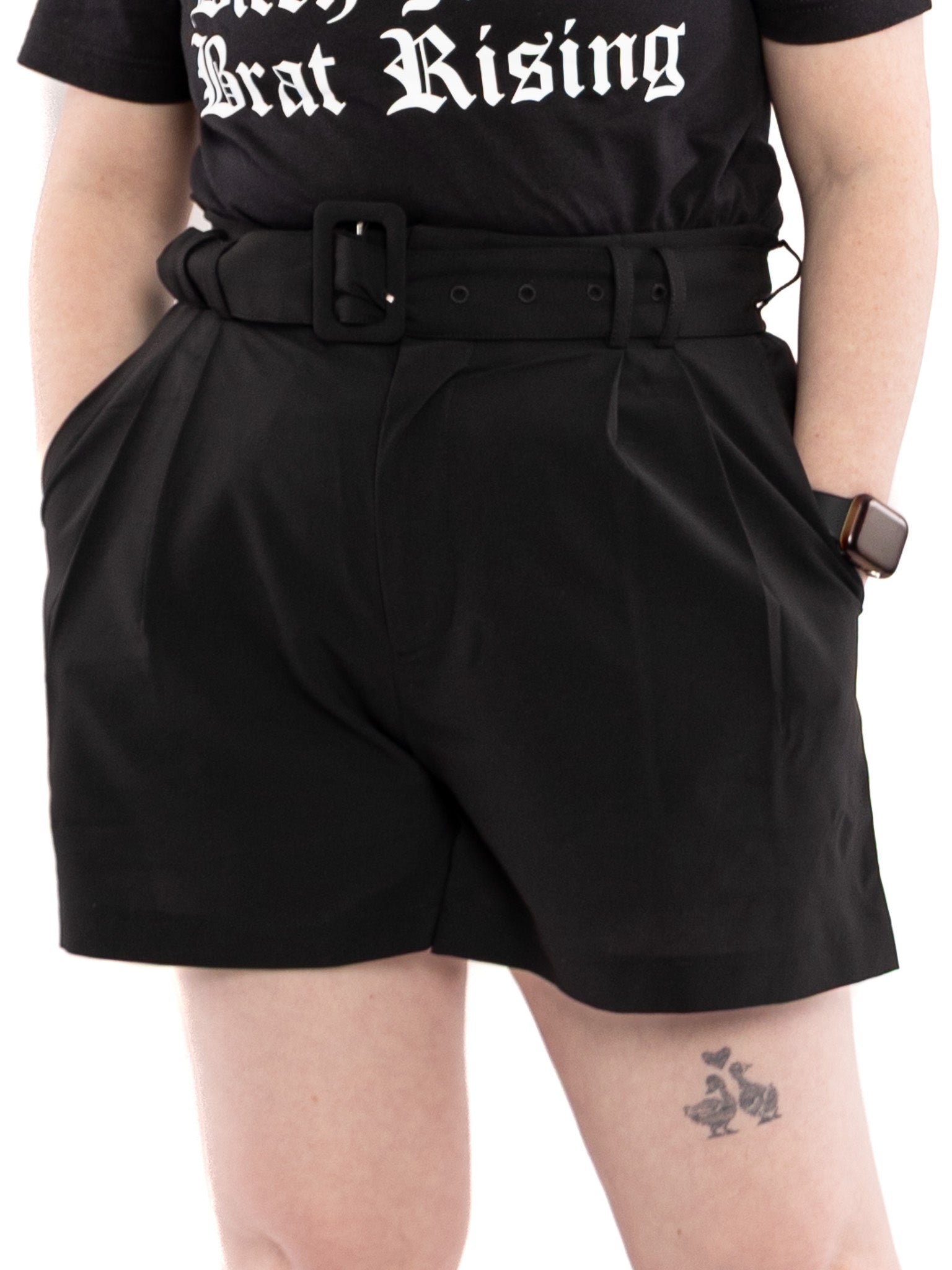These high waisted shorts will b your new summer staple! Lightweight pleated short with waist belt featuring zip fly with hook & bar closure, side pockets and back elastic waist for a perfect fit!