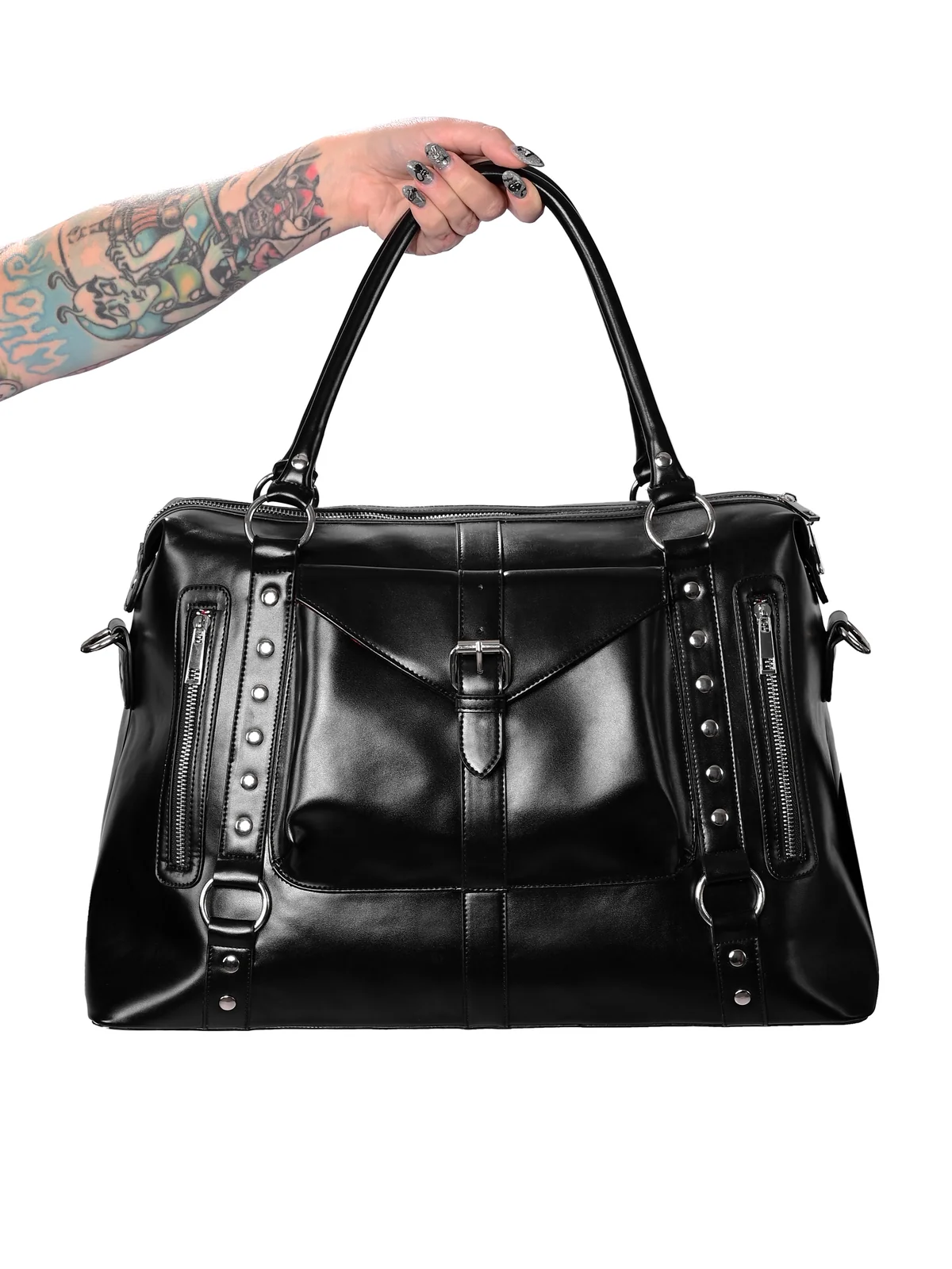 This bag is designed to be your ultimate carry on, complete with a zipper pocket in the back to attach to your suitcase handle.